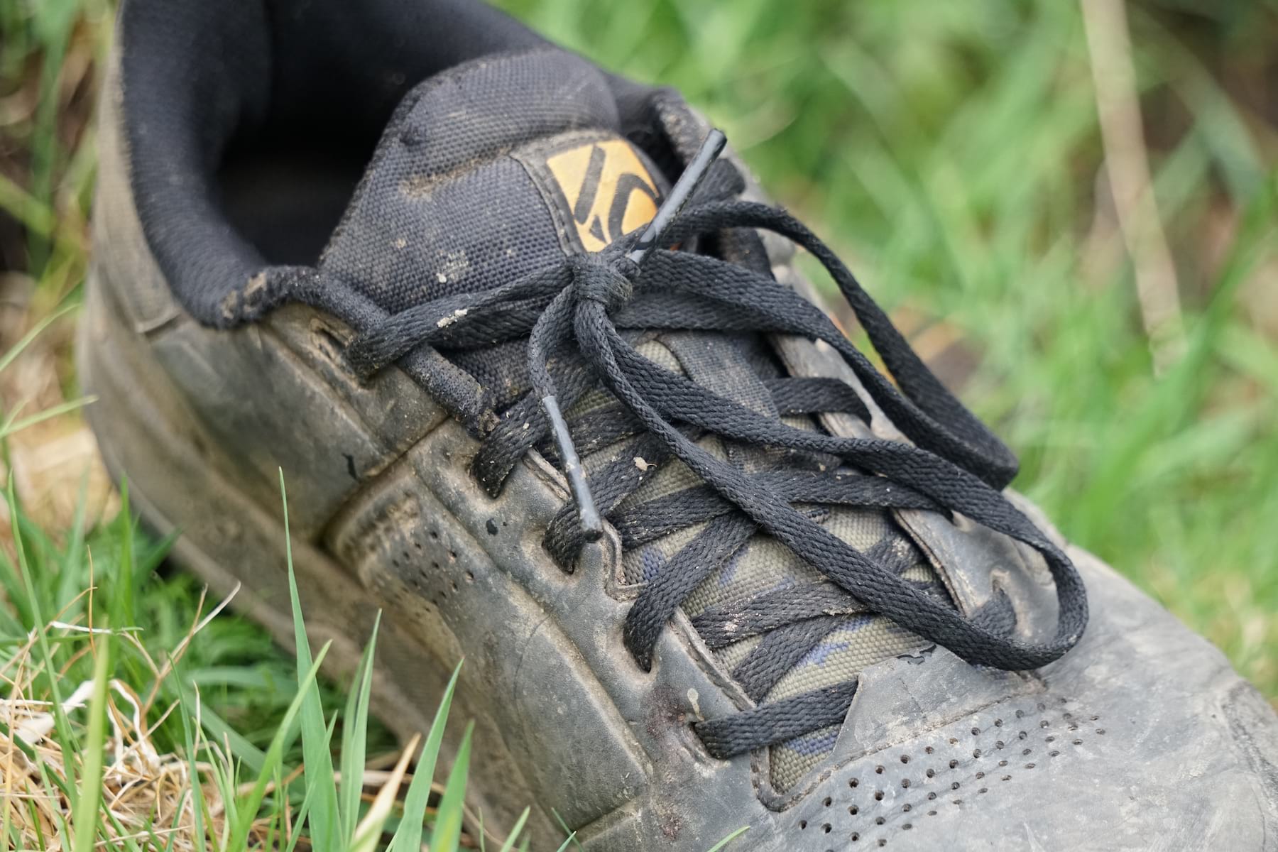 A simple, and traditional set of laces keep the Five Ten Impact Pro on your feet. There’s a simple piece of elastic that keeps the tongue of the shoe in place that can also be used to tuck your laces in out of the way while riding, not that I’ve needed to as I’ve not managed to tangle them in the chainset.