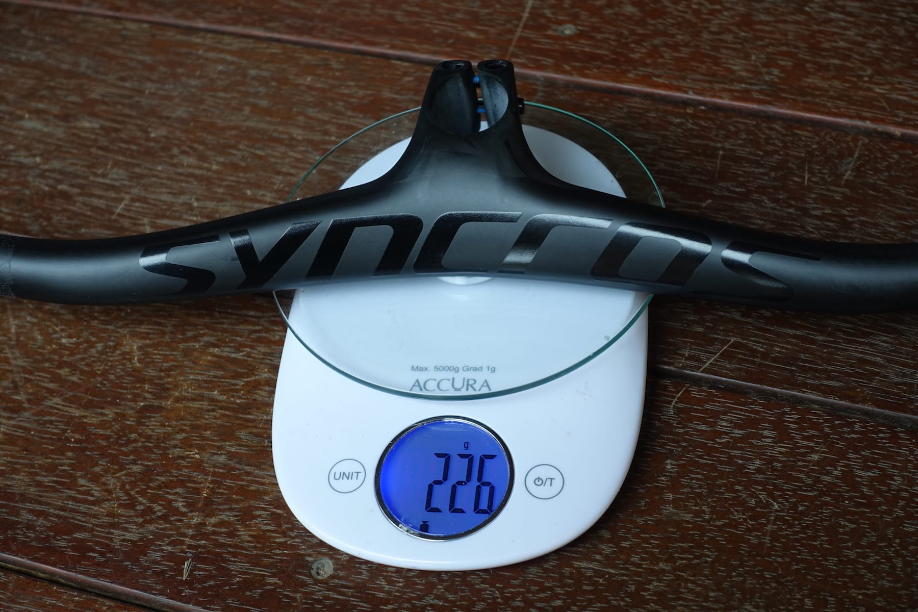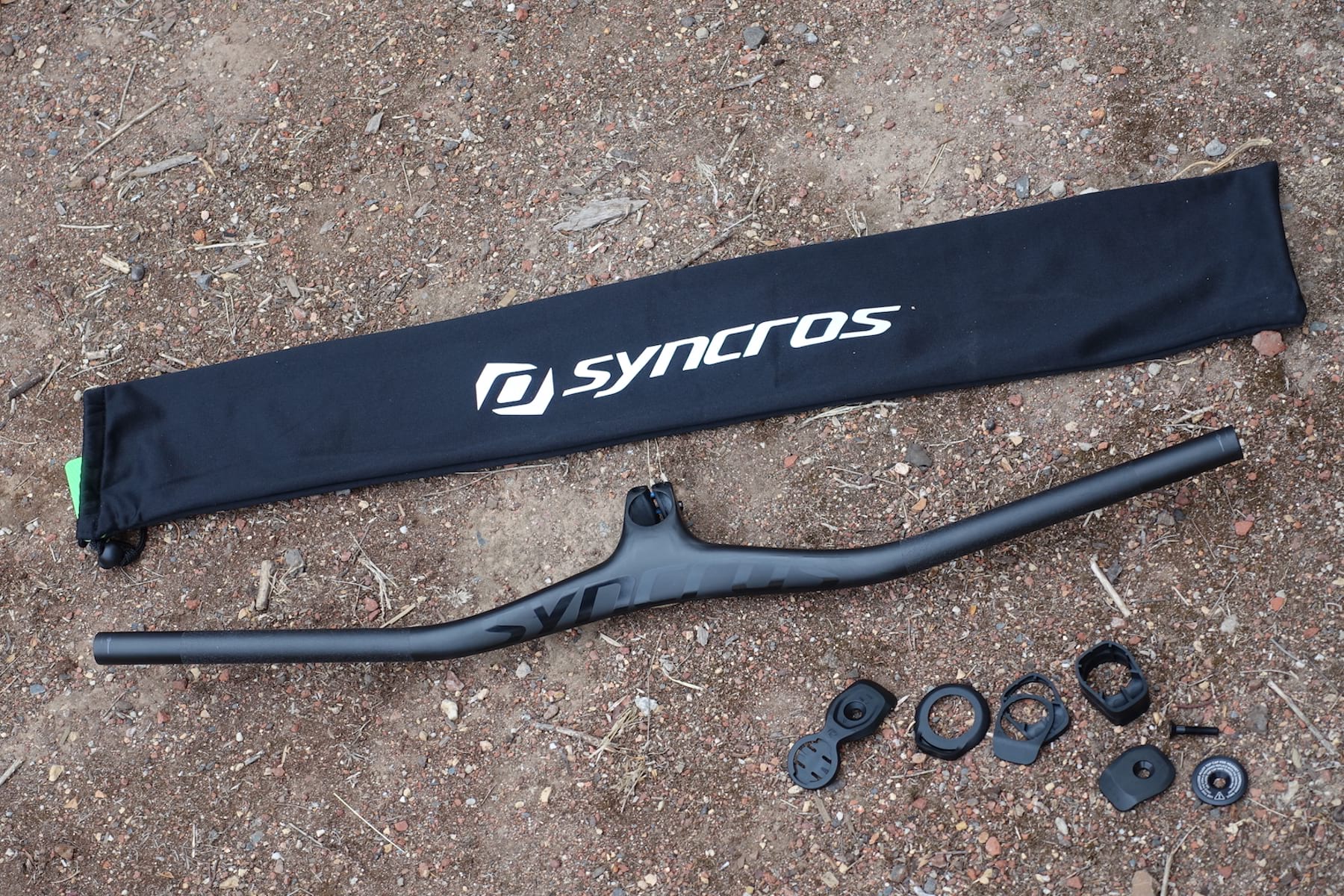 These bars are going on the front of Wil’s Santa Cruz Blur longterm test bike. They’ve replaced a 760mm wide Renthal Carbon Fatbar Lite handlebar and a 50mm long Apex stem. That combo weighed 321g, so that’s dropped over 100g going to the Syncros Fraser iC SL setup. As to how they perform? Stay tuned for the review.