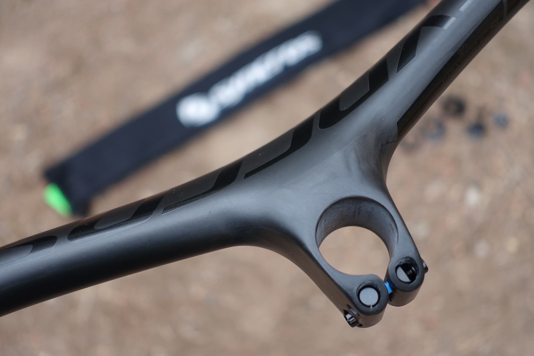 The integrated design was first shown on the Syncros Hixon handlebars, which come as stock equipment on Scott’s flagship Genius and Ransom 900 Tuned models. Whereas the Hixon is designed for trail and enduro use though, the Fraser shown here is for XC applications. Hence the narrower 740mm width and the low weight figure.