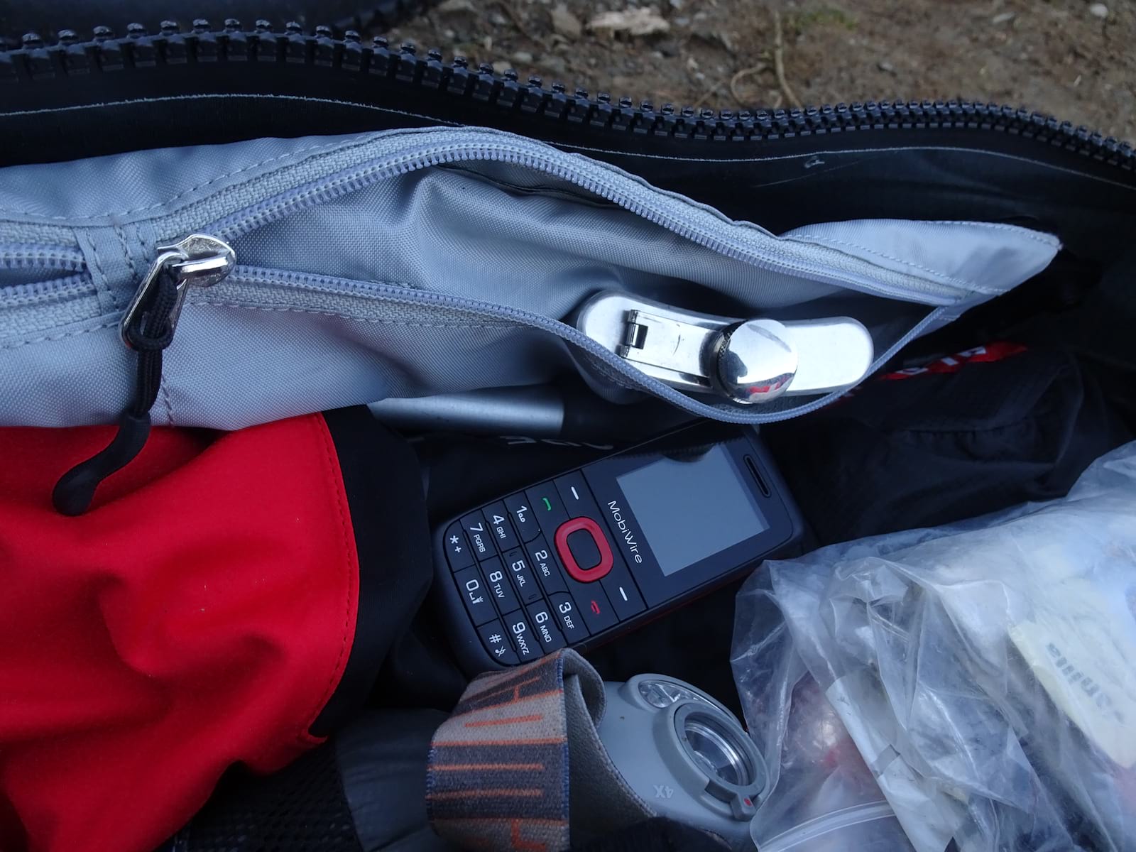 Inside it’s quite simple – there are four lightweight nylon zipped pockets for small items, two on each side of the zip. They’re not really for anything sharp or pointy though – while the pack seems nice and tough the internal pockets are only really designed for light and/or non-pointy things. There’s a strap for tying things down and there’s a long strap with a carabiner, presumably for your keys.
