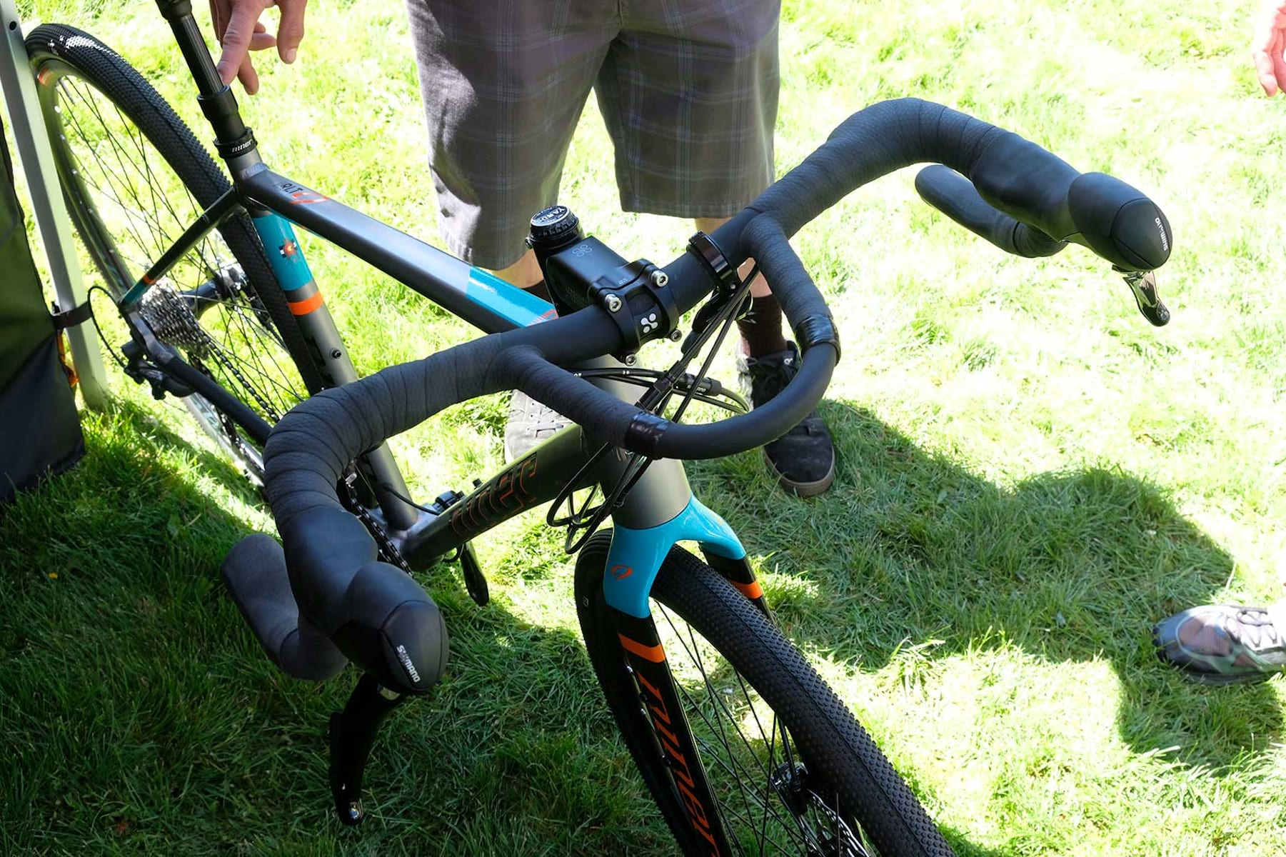 And then finally, we have the Kitchen Sink handlebar. Unlike the ShockDropper or whatever it wants to call itself, this should be out this summer, and at reasonable prices too. The Kitchen Sink bar features a very profiled and flared drop handlebar for big adventures. There are inbuilt aero bars and a flared, wide stance to make it good for gravel bikes and off road drop bar riders alike.