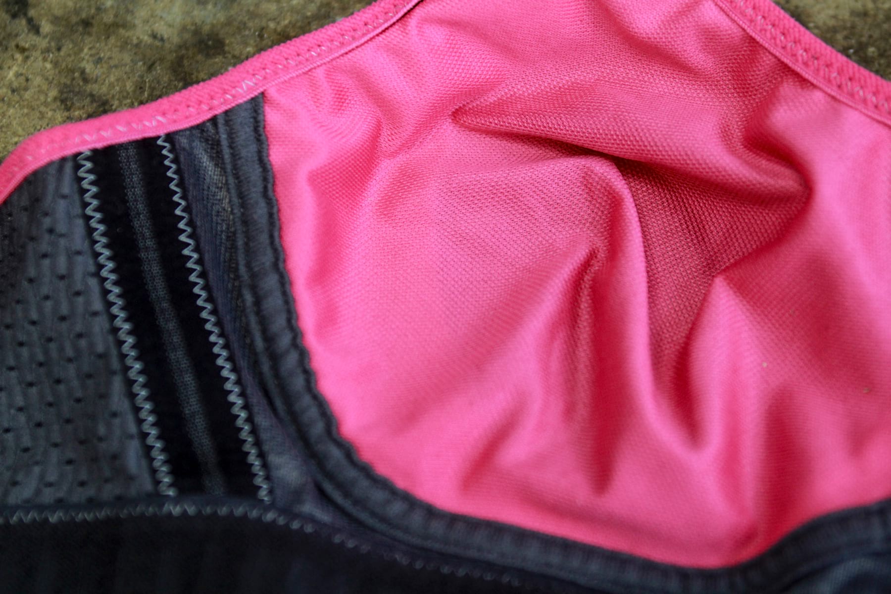 The lack of stretch and moulding to the body feels a bit odd in a day and age where we see all kinds of claims about 2-, 3- or 4-way stretch, laser cut technologies and memory foam or whatever. This is by and large a fairly traditional bra but with sports level support – or should that be strapping? However, for all that compression, I found it to be comfortable with no hot spots, tough seams, or rubbing points. The wide bust band with that slightly fuzzy internal texture and the broad straps don’t dig in, despite the compressive nature of the bra. The shoulder straps in particular gave neither of us any trouble, with the broad padded shape seeming especially comfortable, even under a ride pack. It wicks well and is cool to wear – perhaps more important if you have a greater boob surface area than I do, but still I appreciated that it didn’t feel like I was wearing an extra baselayer.