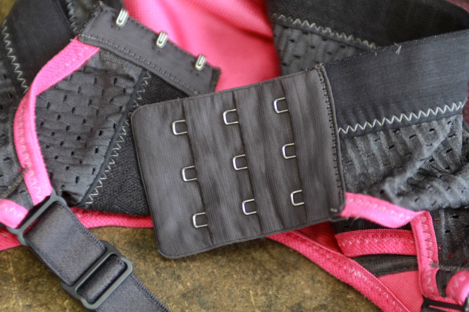 The bra opens out completely at the back – this is not an over-the-head bra or crop top. There are three bust circumferences positions each secured with three hooks and eyes, making it quite substantial feel but distributing the weight across a broader area.