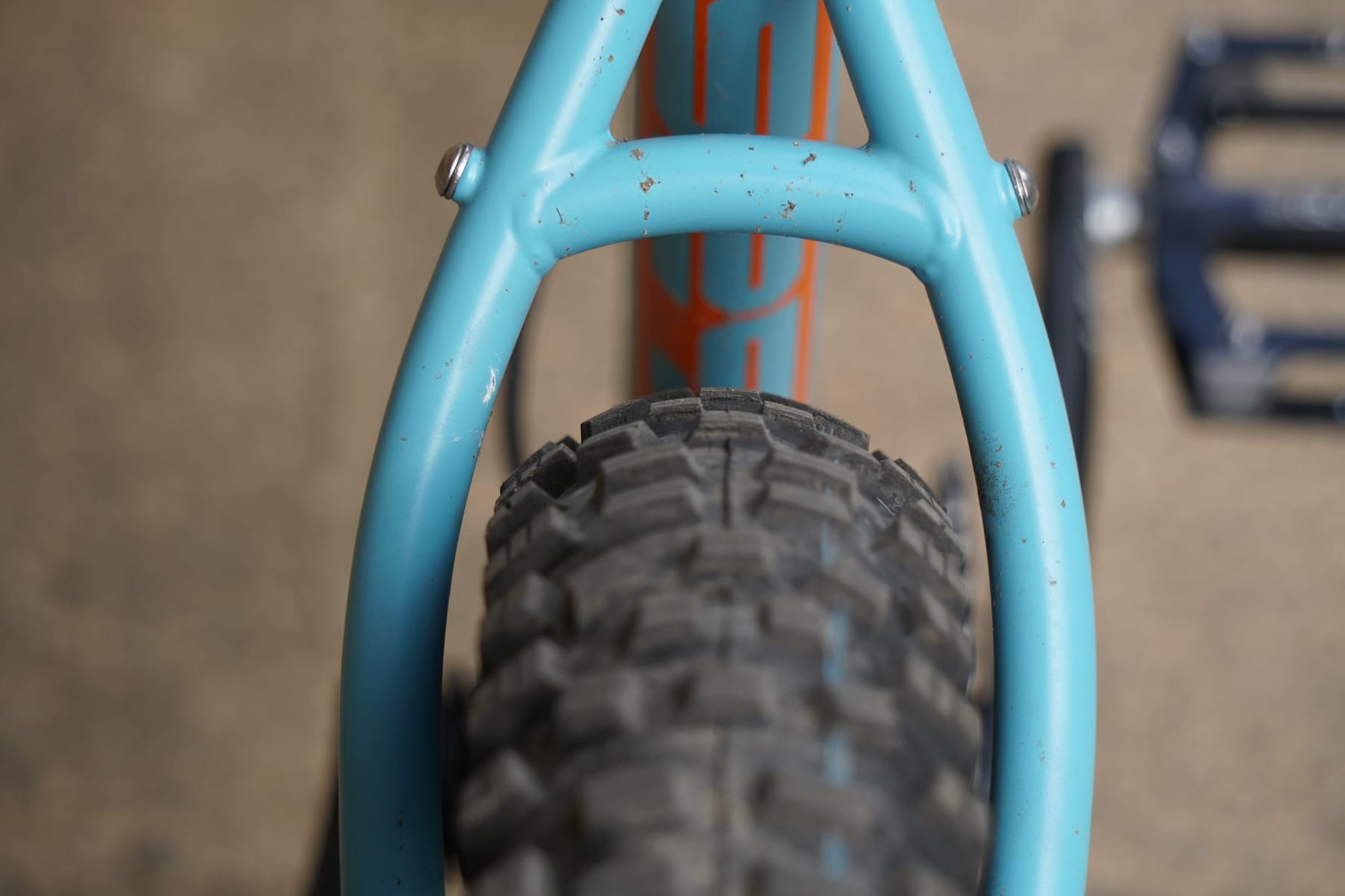 - Speaking of clearance, with a modern wide 29er rim in place and a 2.35in Schwalbe tyre mounted, the mud clearance isn’t huge.