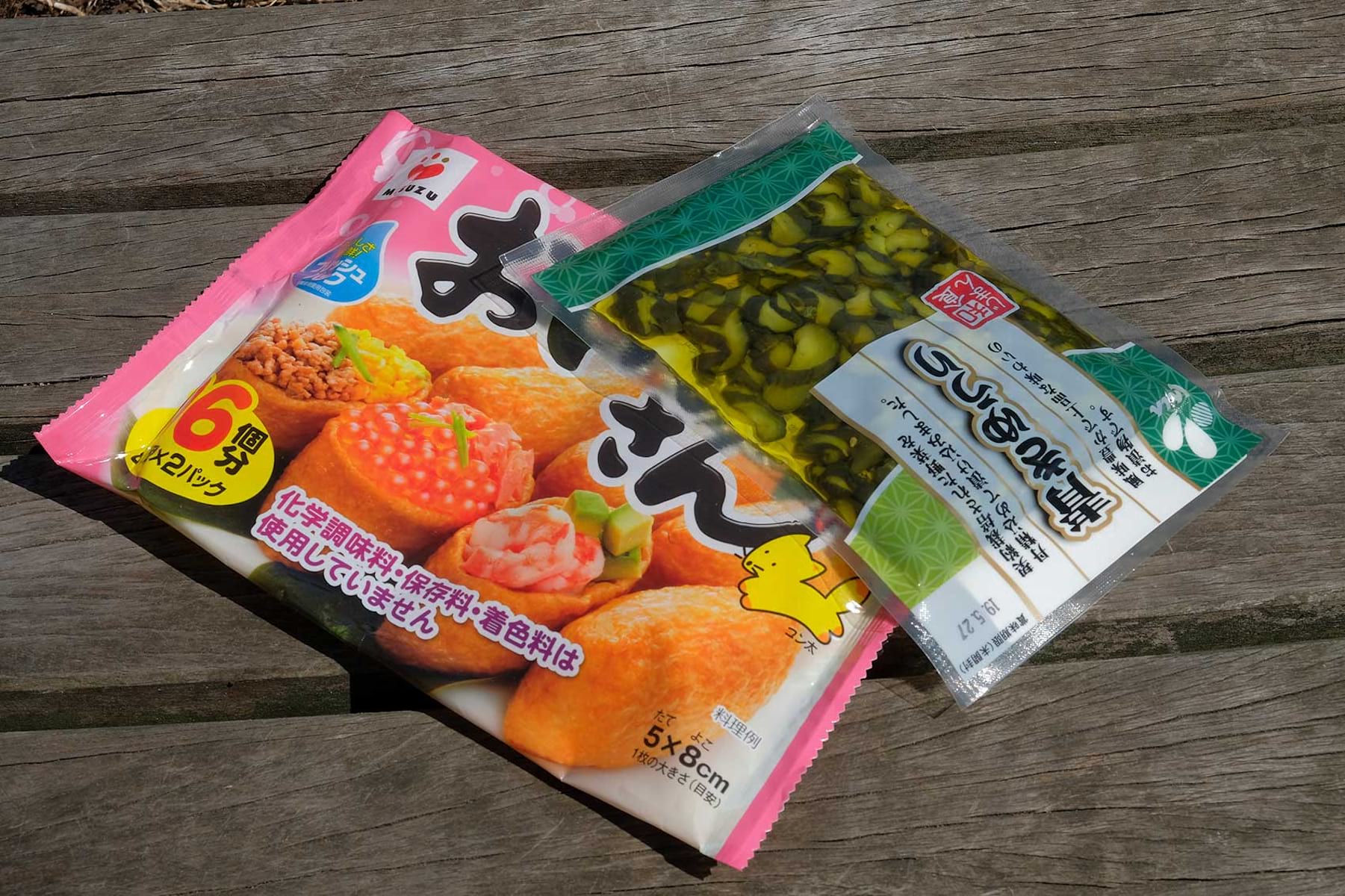 Chipps has been on the sake again, ordering up giant boxes of Japanese ingredients for his famous sushi parties that we never get invited to. Here we have Inari (rather delicious – no really! – fried tofu wraps) and some Pickled Cucumber too. There are other fun looking things in the box, but we don’t want to make you hungry if you’ve not had lunch yet.