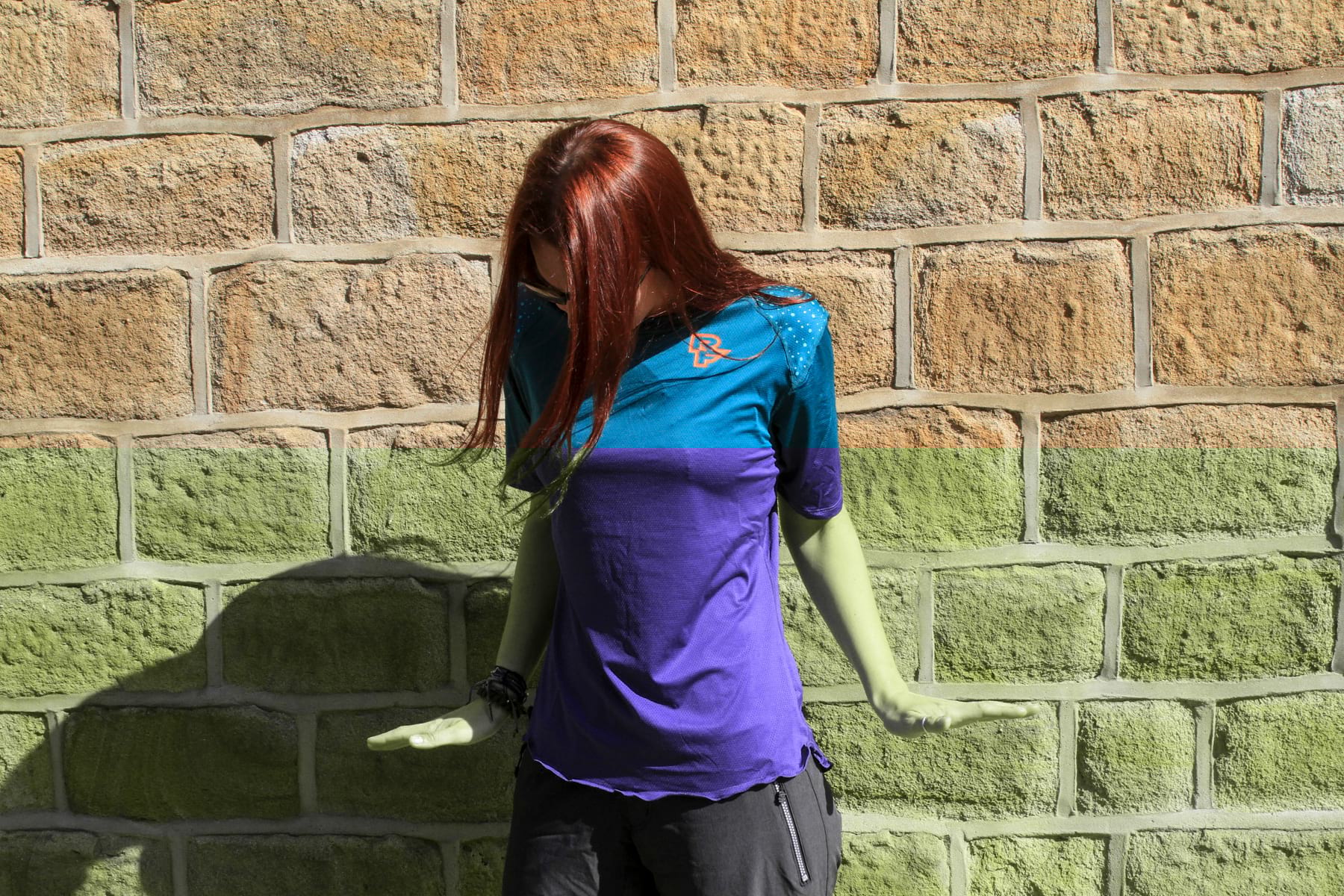 Available in dark spruce or black/grey, this rather girly jersey features a colour block design with flatlock stitching throughout, a drop hem and a frilly finish at the bottom.