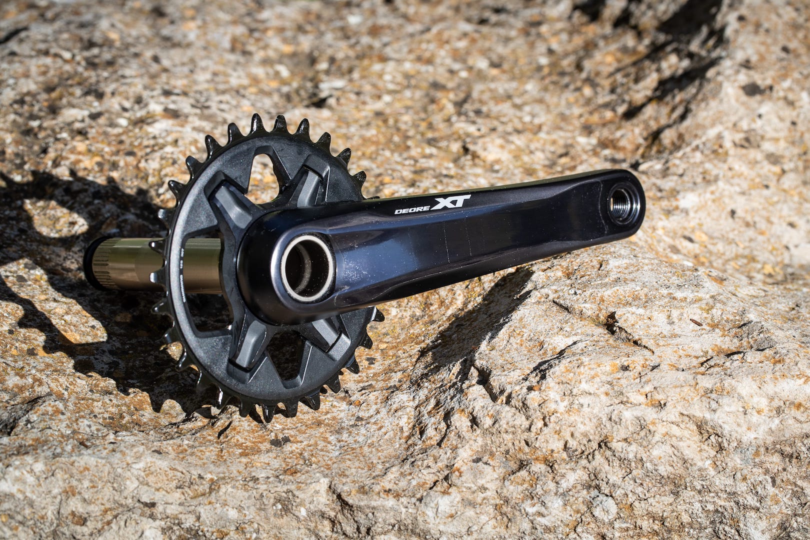 Following in the footsteps of XTR M9100, XT bumps up a gear to 12-speed, with both 1×12 and 2×12 drivetrain options available. The Hollowtech II cranks now utilise direct-mount chainrings, with single and double options available.