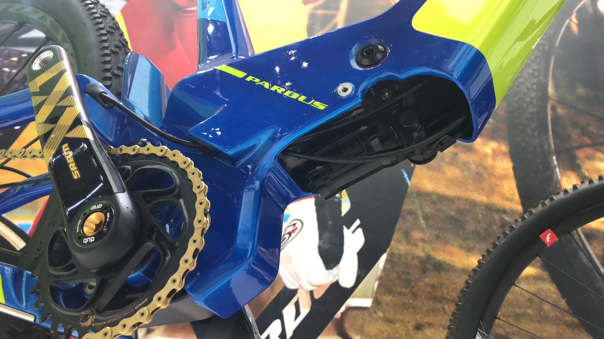 You may look at this bike and think it’s an e-Bike it’s actually a none assist full-suspension bike designed around Fox Live Valve technology. What’s unique is the Scissor Link suspension system that was designed by a founder of Niner Bikes. The link means that the rear shock sits low down in the frame and is hidden so that it won’t get damaged by debris and rocks. Pricing is 88,000 RMB which is over £9000 without Live Valve.