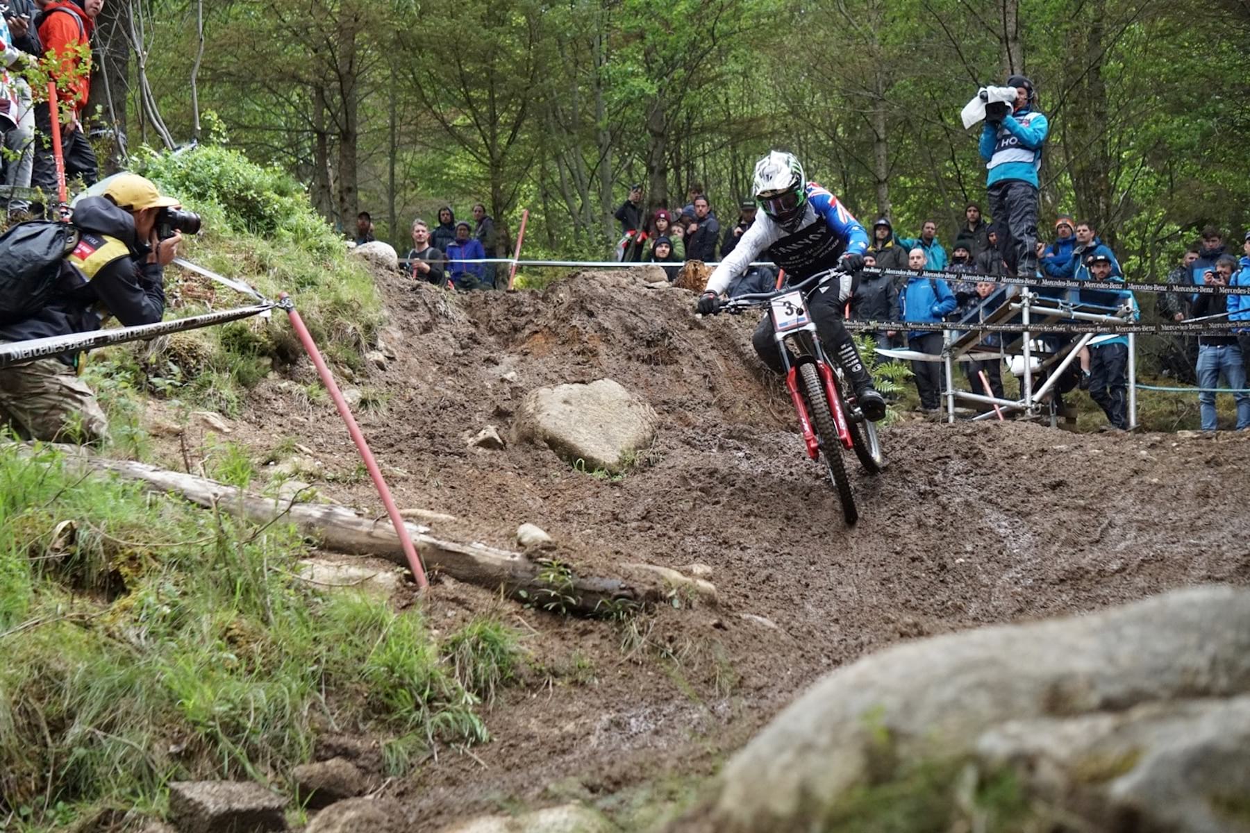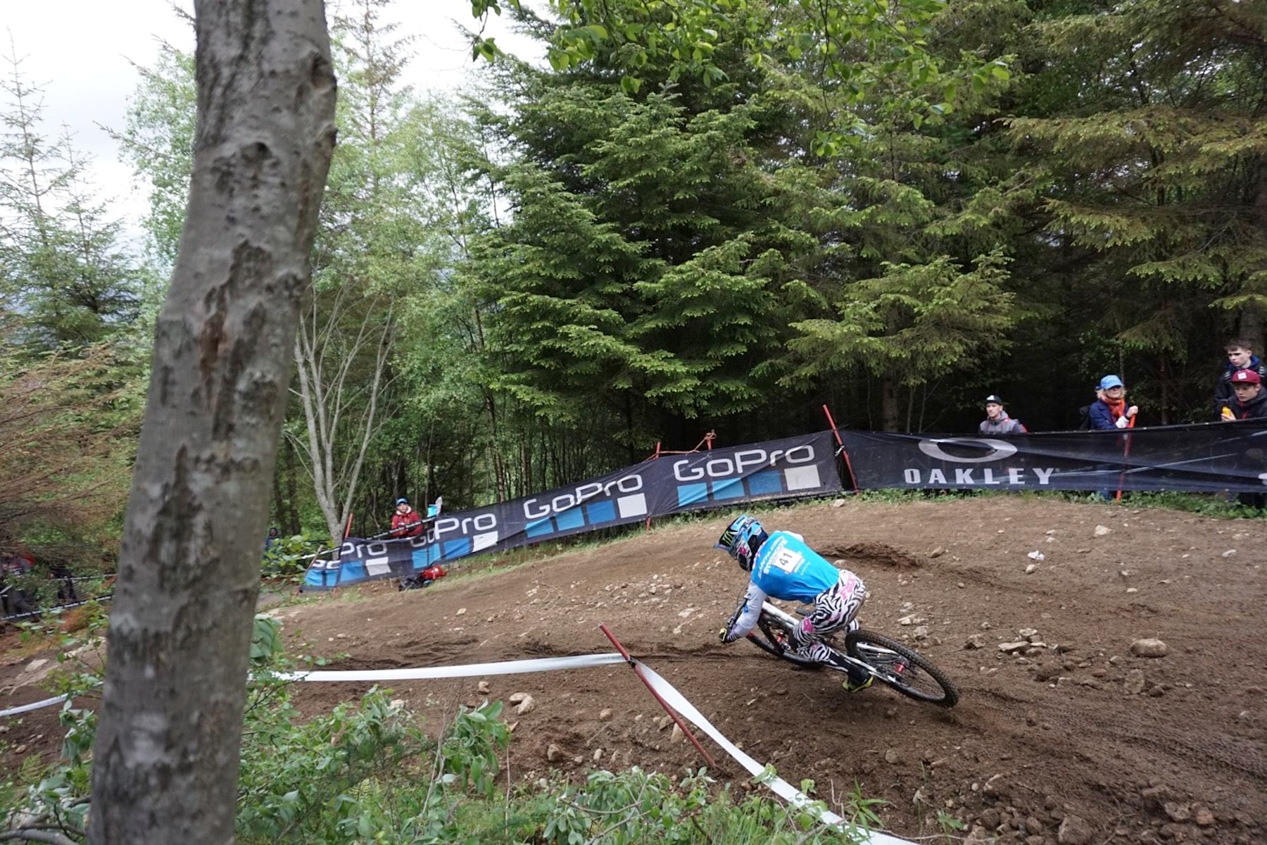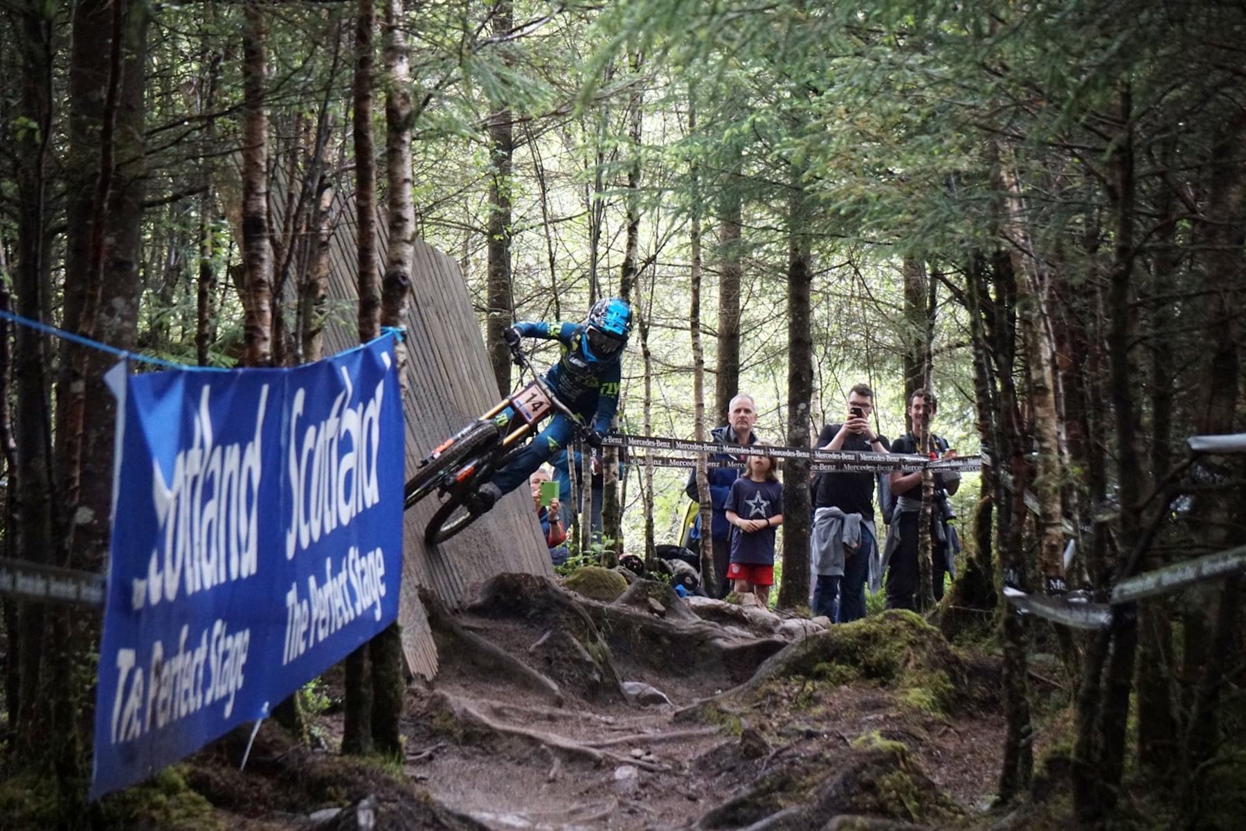 Flat tyres had been a regular occurrence during the morning’s practice sessions, and it continued to plague certain riders, including Australia’s Jack Moir, who were discovering some of Fort William’s sharper rocks on their way through the lower half of the race course. It sounded like the tricky woods section was the main culprit, wreaking havoc on rider’s rear tyres, and seeing many come into the main road gap with not nearly enough speed. There were many hard hucks-to-not-quite-the-landing.