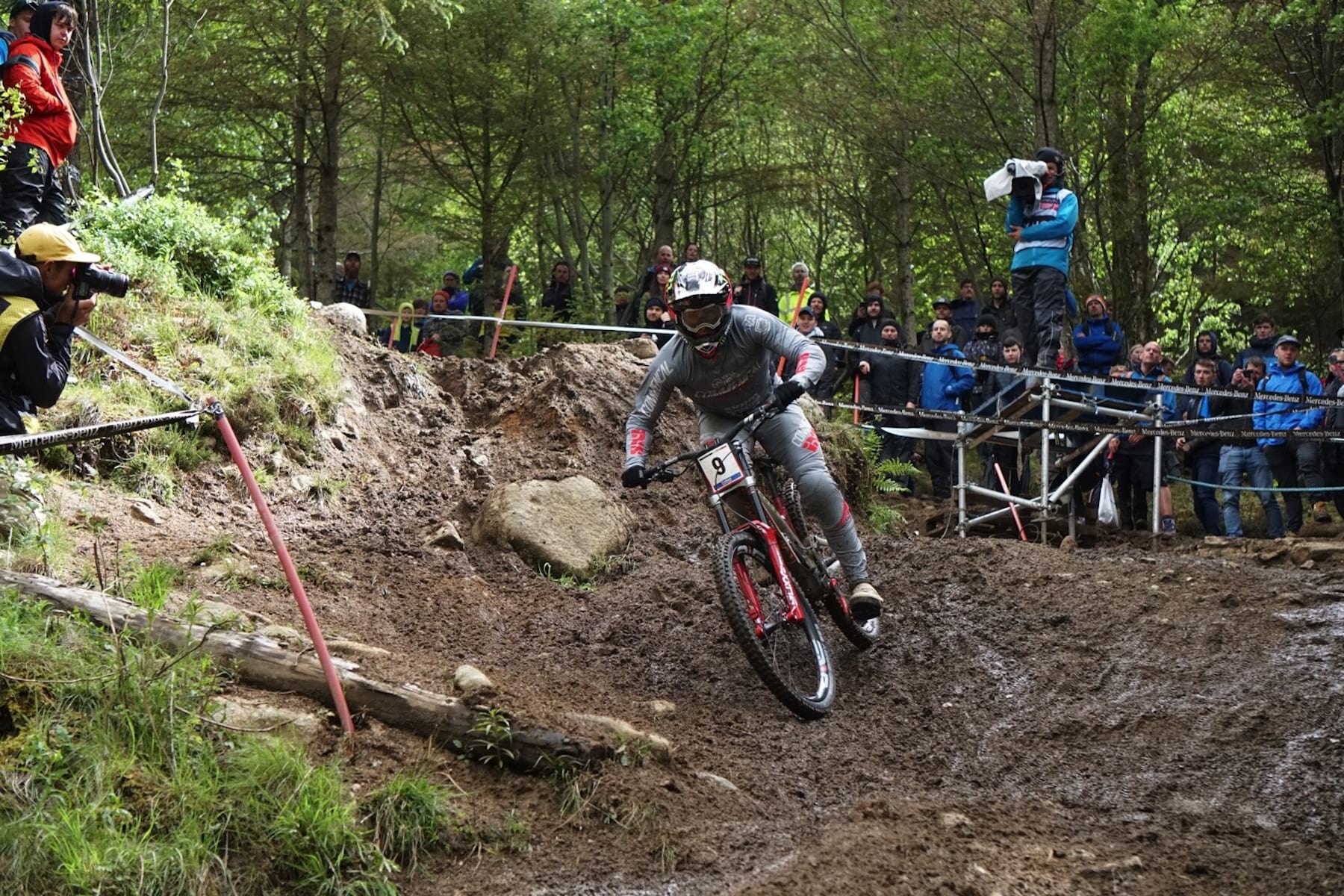 In the end it was Loris Vergier of the Santa Cruz Syndicate who took pole position, with a very speedy time of 4:34.305 (the winning time in last year’s Elite Mens race was 4:34.45). Fellow Frenchman, Amaury Pierron was barely half a second behind, with Troy Brosnan of Canyon Factory Downhill Team in third. Trek’s Reece Wilson and Madison/Saracen’s Danny Hart put on a show for the home crowd, rounding out the top-five.