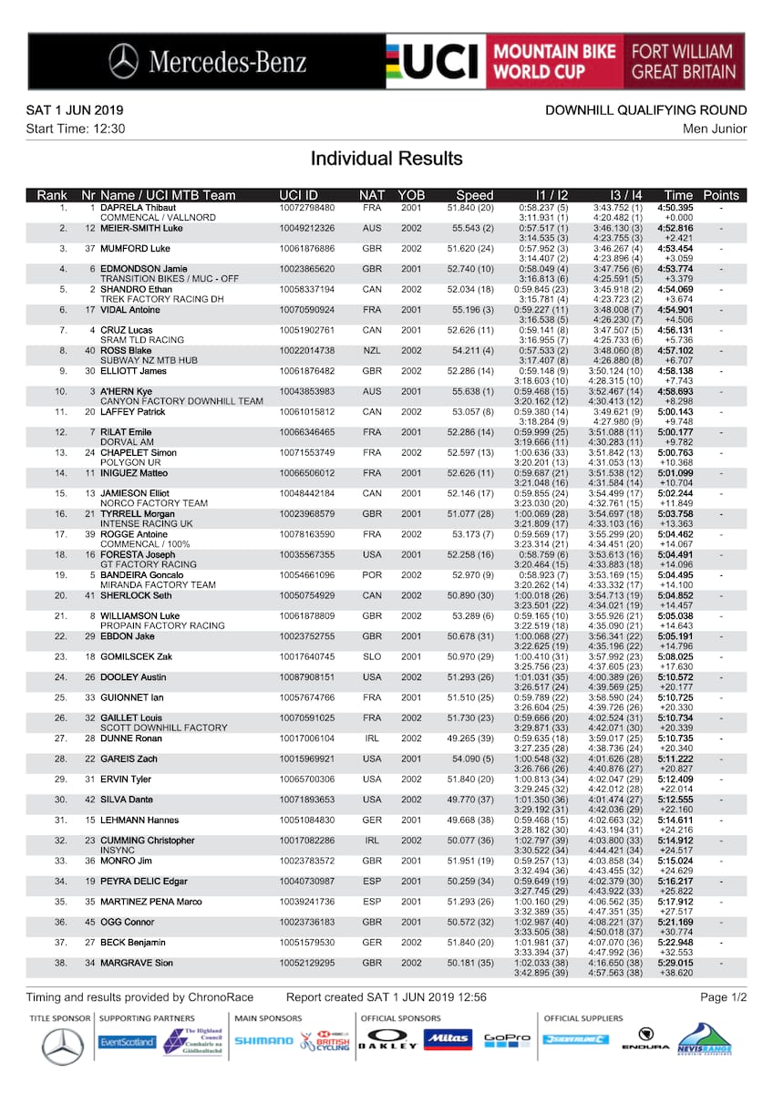 The Commencal-Vallnord team has had a strong showing all weekend, and their Junior Men’s rider, Thibaut Daprela followed up on his slick practice run from yesterday with the fastest time during qualifying. Just two seconds behind was Luke Meier-Smith, with Luke Mumford (apparently not from the band), and Jamie Edmondson finishing barely another second back. Ethan Shandro (son of legendary freerider, Andrew Shandro) continued his form with fifth fastest time in the Junior Men’s category.