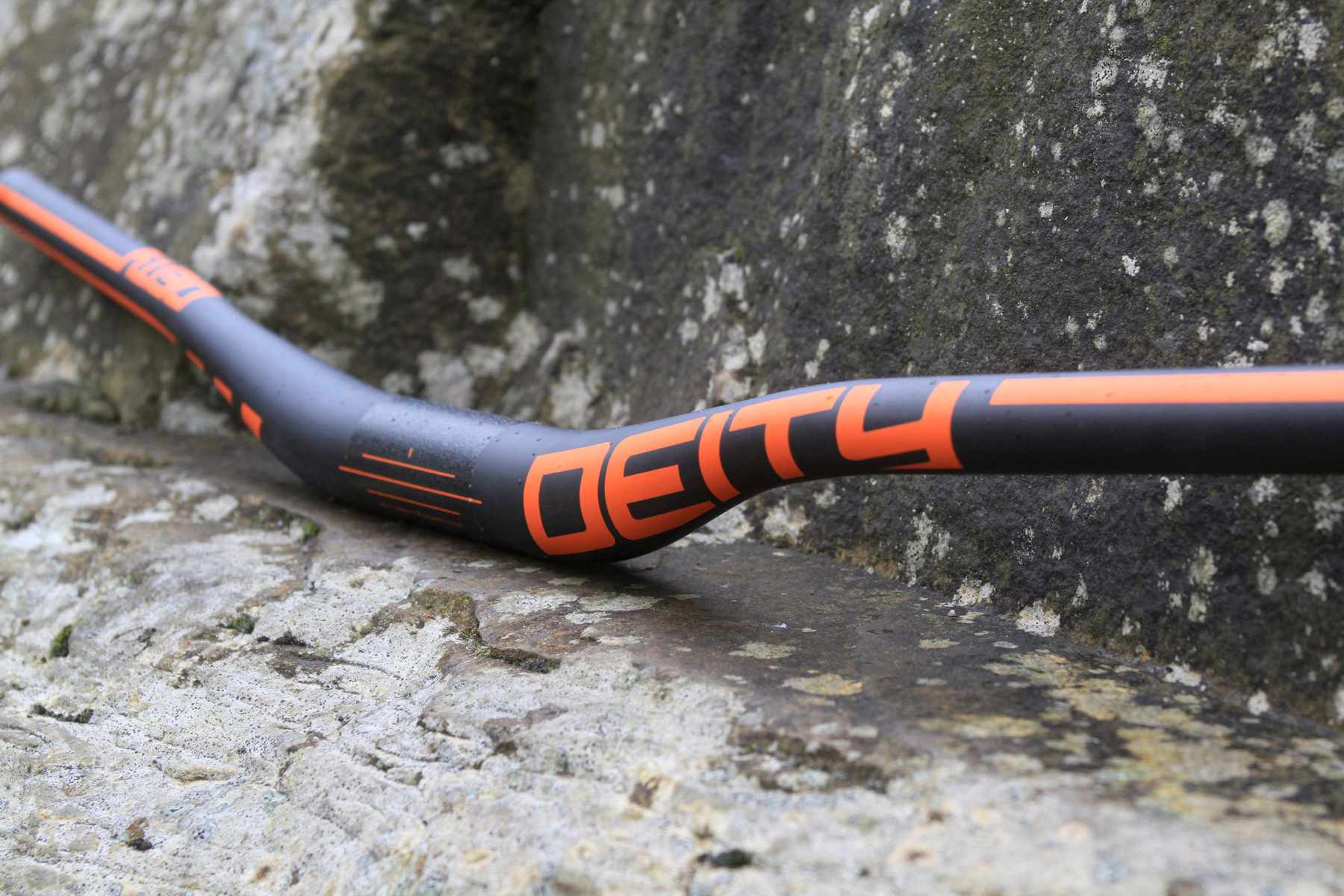 These carbon bars from Deity feature a 30mm rise, 810mm width, 9 degree bend x 5 degree upsweep. Wide! They have developed the bars to offer a balance of strength, weight, and ride quality. Deity claim these to be the strongest 35mm Downhill/Enduro Carbon Handlebar on the market, but we’re not sure how that’s been measured so we’ll send Andi off to crash into some trees and rocks with them.