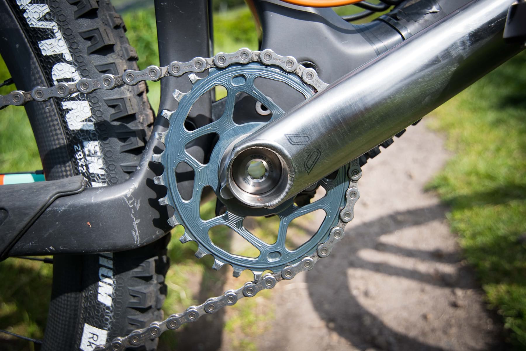 As I previously mentioned, Cane Creek suggests that these cranks are over 30% stiffer than equivalent carbon cranks. Now I can’t claim to have ridden all of the swishest carbon cranks out there, but I have ridden a few, and I can categorically state that I’ve *never* thought that carbon cranks were too flexy. There are, it seems to me, opportunities to uncover flex in many places on a mountain bike through pedalling forces. Tyre sidewalls, wheels, chain stays or suspension pivots, I put it to you, will all demonstrate obvious flexiness before cranks, if properly designed.