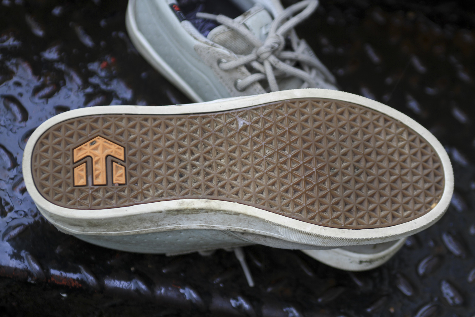 The Etnies Jameson Mid Crank are available in five different colours, in a range of what I might describe as ‘earth tones’ – handy if you want to match your shoes to the colour of your dirt jumps? They’re nicely understated, normal looking shoes that don’t scream ‘I’m going riding my bike, bro!’. All the soles – there are four different colours – have a ‘Geo-Hex’ tread pattern, and there’s a foam insole for cushioning.
