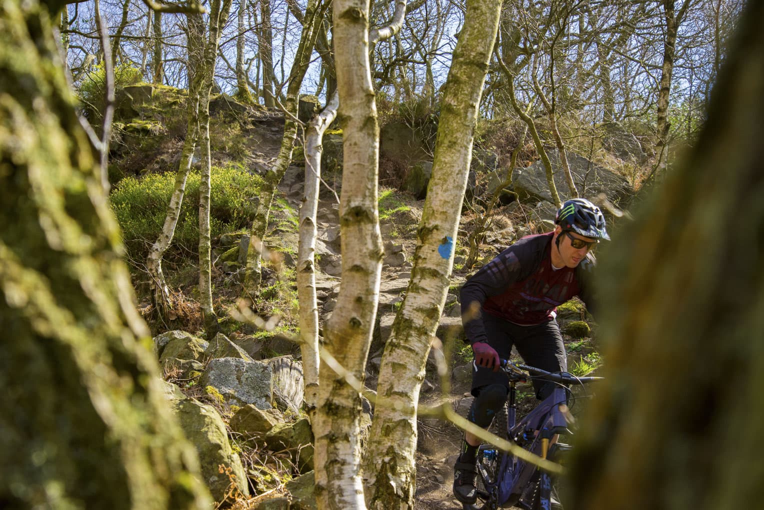 With Grenoside and Wharncliffe Woods straddling Steve’s house, there’s no surprise he’s been happy here for the last 18 years, and on a dry, dusty spring day there are few riders who have this quality and quantity of trails on their doorstep. There’s no loading of vans – it’s just bikes out of the shed and off we go.