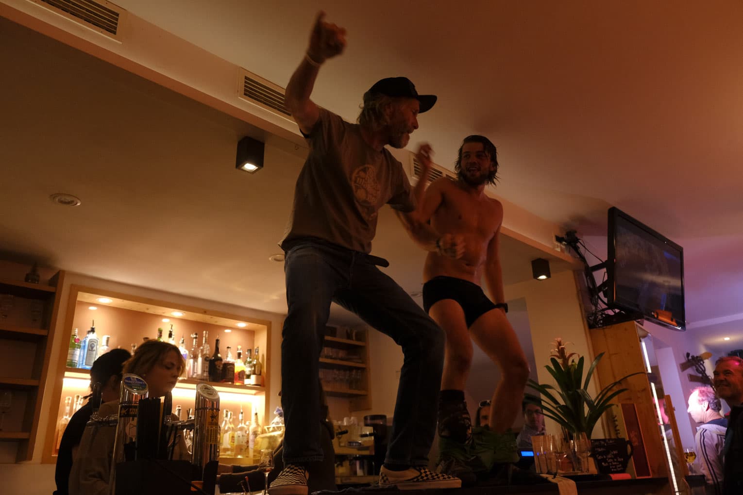 And then it was time to celebrate! The party carried on in the hall until the dumplings were all eaten and the beer was drunk. Then it adjourned to a nearby bar for the after-party. With a backbeat of full-on Euro dance music, riders caught up and relived stages and drank beer. None with as much enthusiasm as the men’s winners, who downed shots and sang and danced on the bar until the place closed.