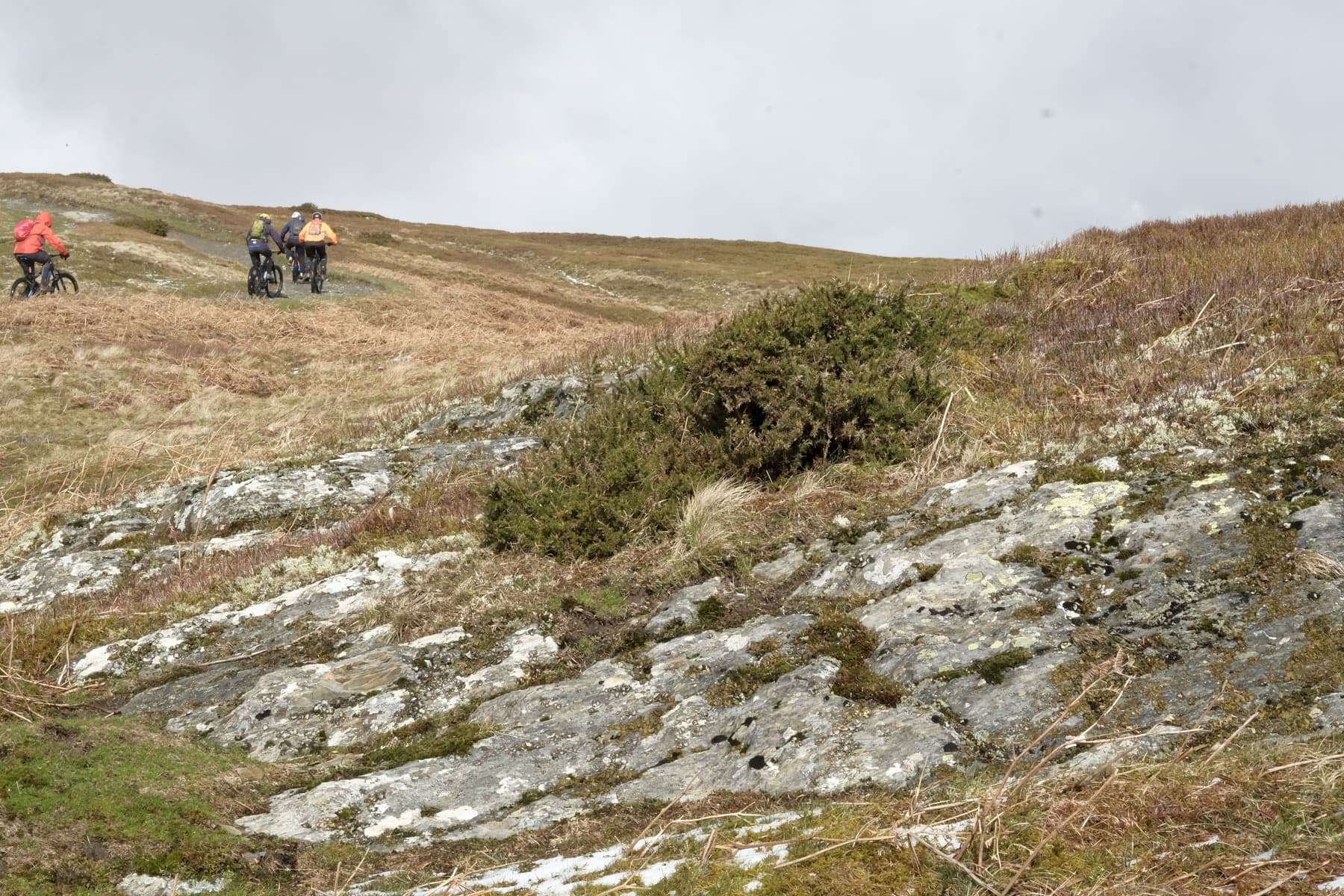 Our second day was no less committing, with a 40km loop (and another 1,100m climbing) planned that started by going straight up the fun final descent of yesterday. Normally, this would have been met with sour looks at the guide, but with full tanks of ’leccy and rested, though surprisingly tired, legs, we all took it as a chance for a social spin up.