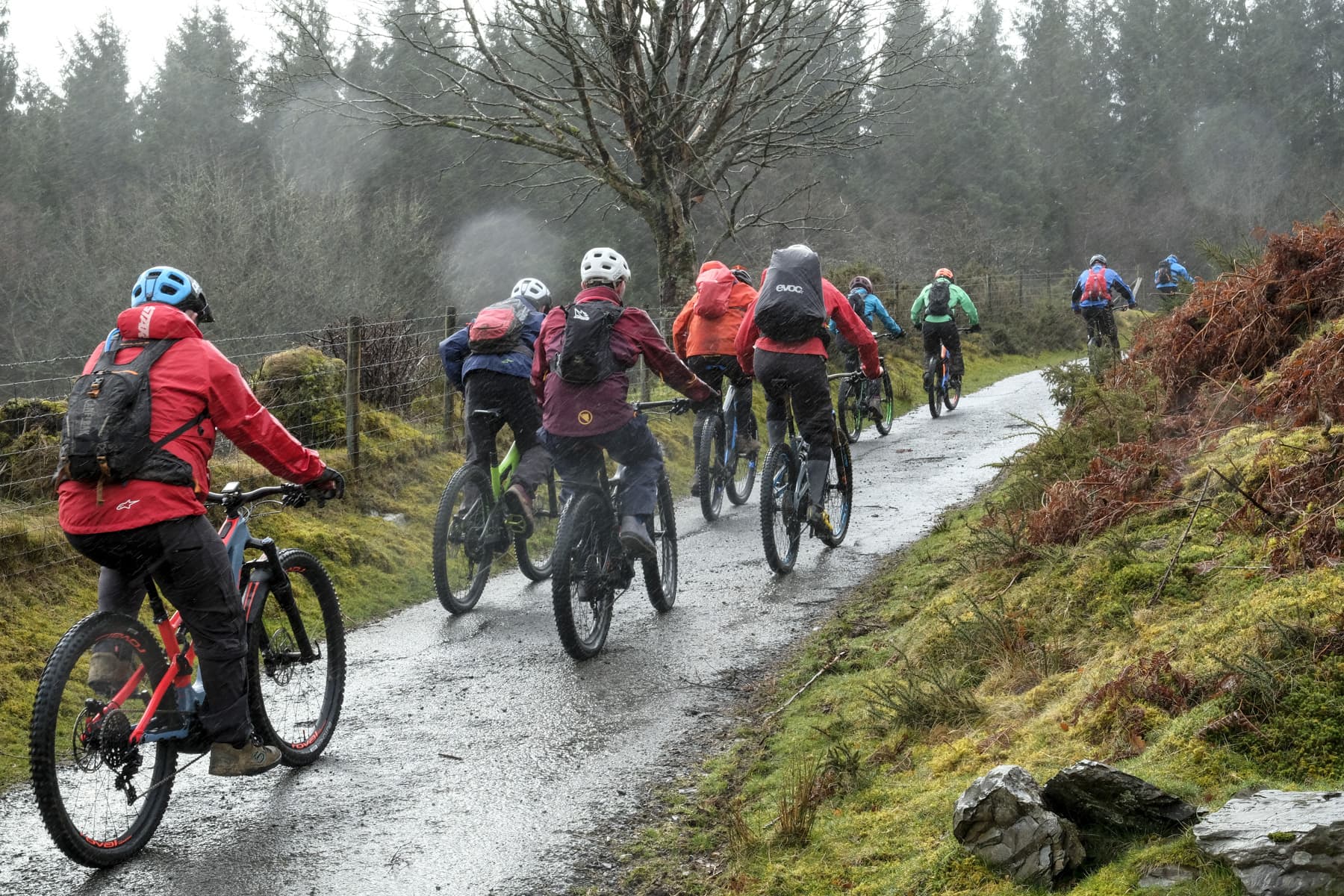 With the final descent being taken with a surprising amount of daredevil spirit, even in the cold and wet, riders were soon burning batteries for the final couple of miles back home to Glandwr House and thoughts of hot showers, dry clothes – and perhaps even a dip in the hot tub in the rain, or the steam room out of it. There would definitely be beer.