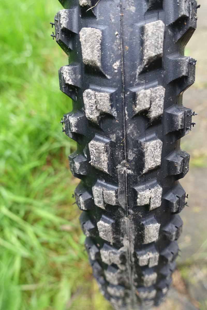 The new Edge 22 is a dramatic departure from other front-only tyres. These usually have a collection of centre-based knobs to keep things rolling swiftly, or they feature toothy knobs for braking grip. Tioga’s Edge 22 is different in that it doesn’t actually have ANY centre knobs. there’s a big, empty channel instead.