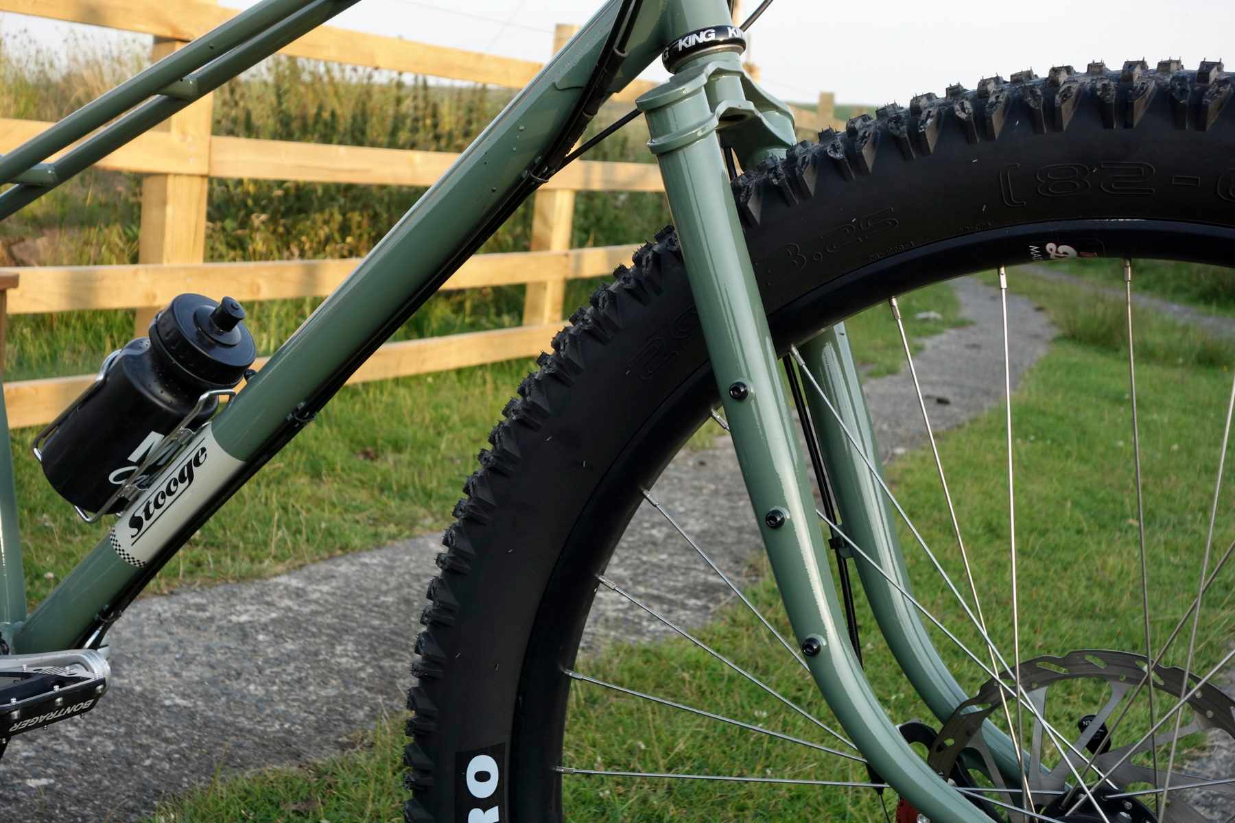 If you fancied dressing it up for a bit of town or commuter action you could fit a 2.35in slick tyre as a minimum, but with no mudguard mounts, you’ll need to dress up in full waterproofs come winter.