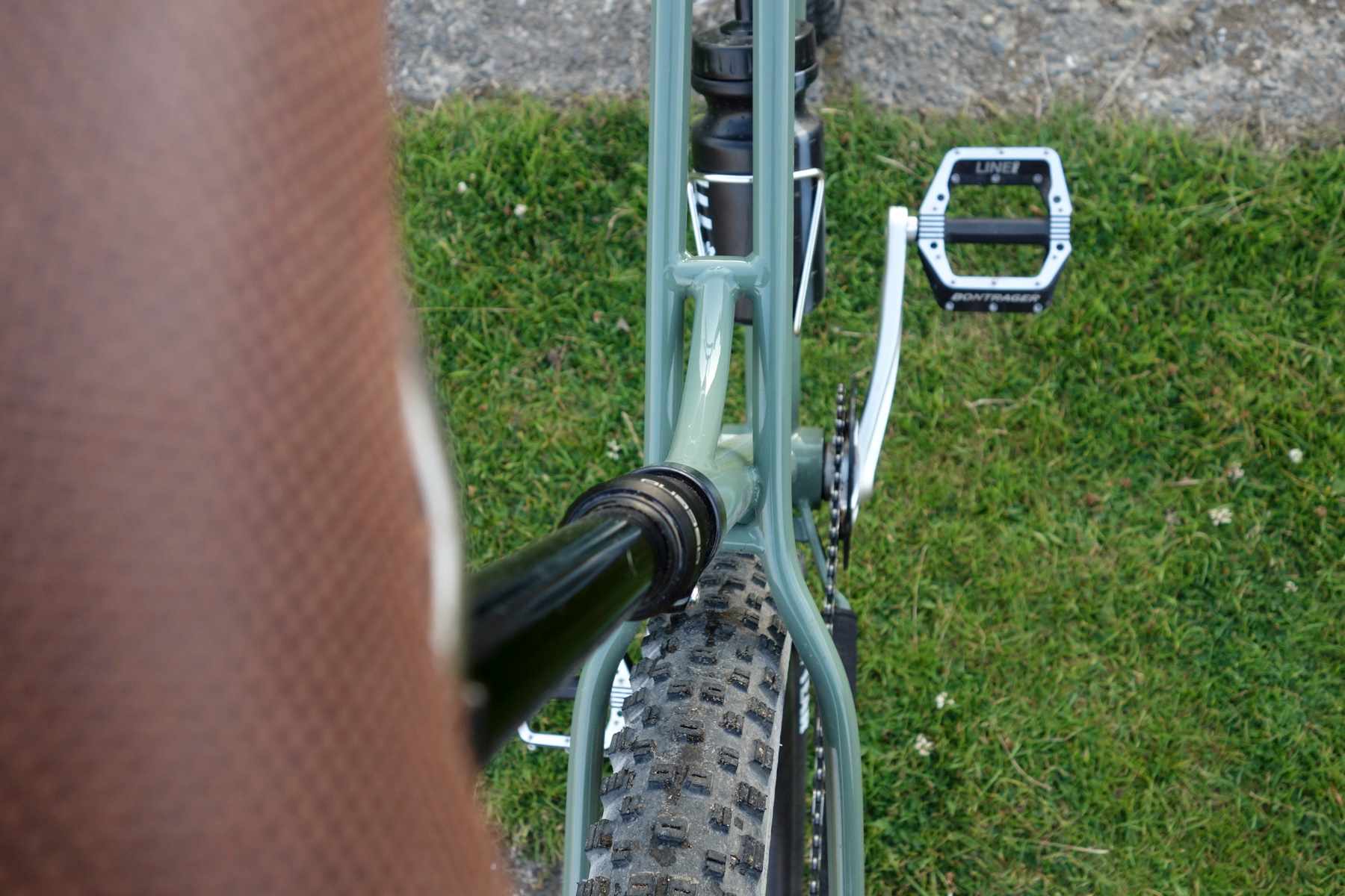 Andy eschews suspension in favour of steel, purpose-built-for-rigid-riding geometry and natural cushioning through the tyres. The MK4 is designed to get the rider’s weight behind the front axle, keeping it under control even without suspension on technical trails. This is no beach cruiser.