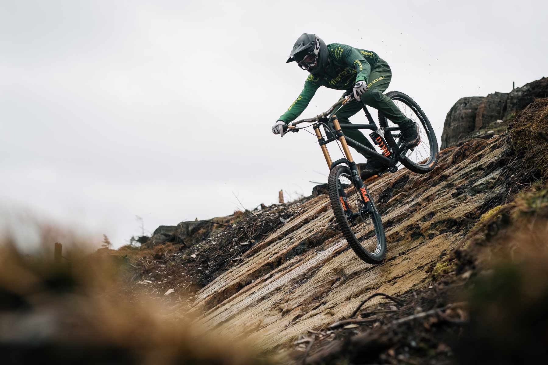 Dan said “My whole life I’ve been searching for that perfect mix of maximum elevation with long descents and really varied terrain; the land here falls from a 666m peak at Tarren y Gesail almost to sea level, on the South side of the mountain we have mellow gradients and amazing dirt, perfect for our jumpline “50 Hits” and on the North, slabs of bedrock, roots and rocks create the perfect natural terrain for the downhill tracks.