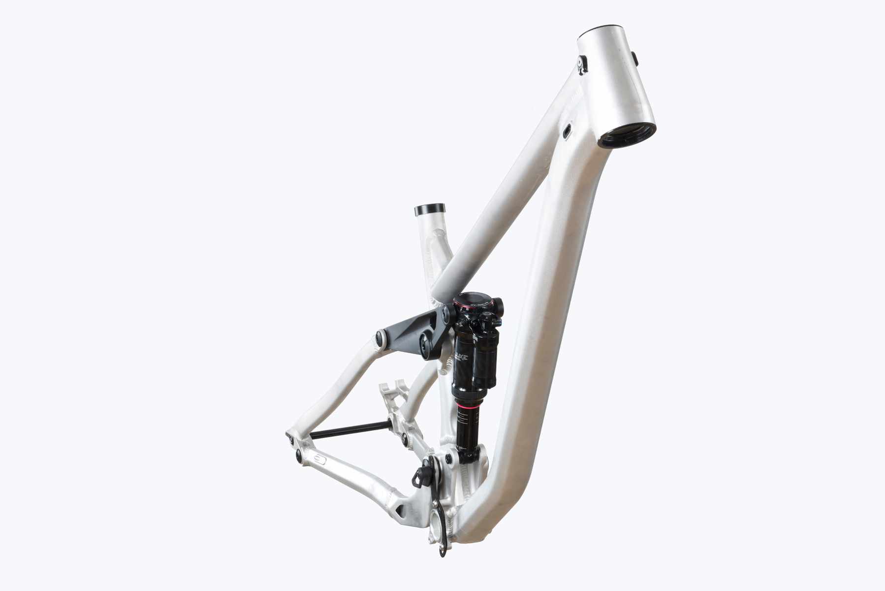 It’s a fully custom frame with some open mold tubes, with the UK enduro scene in mind.