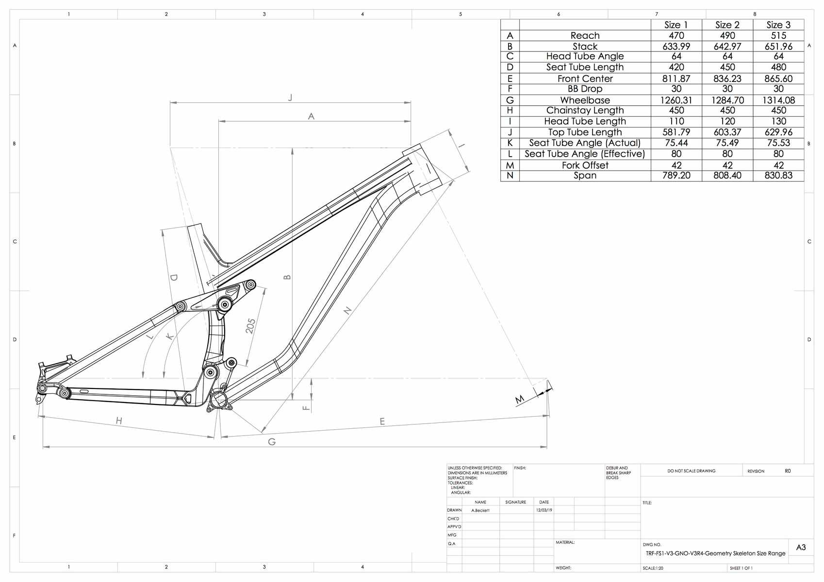 The bike has been designed to have progressive geometry to descend as fast as possible, while reducing fatigue with a low effort climbing position. This is with the aim of reducing upper body stress on steep transitions and therefore increasing readiness and speed in the timed stages. To achieve this, the prototype has an 80 degree seat angle.