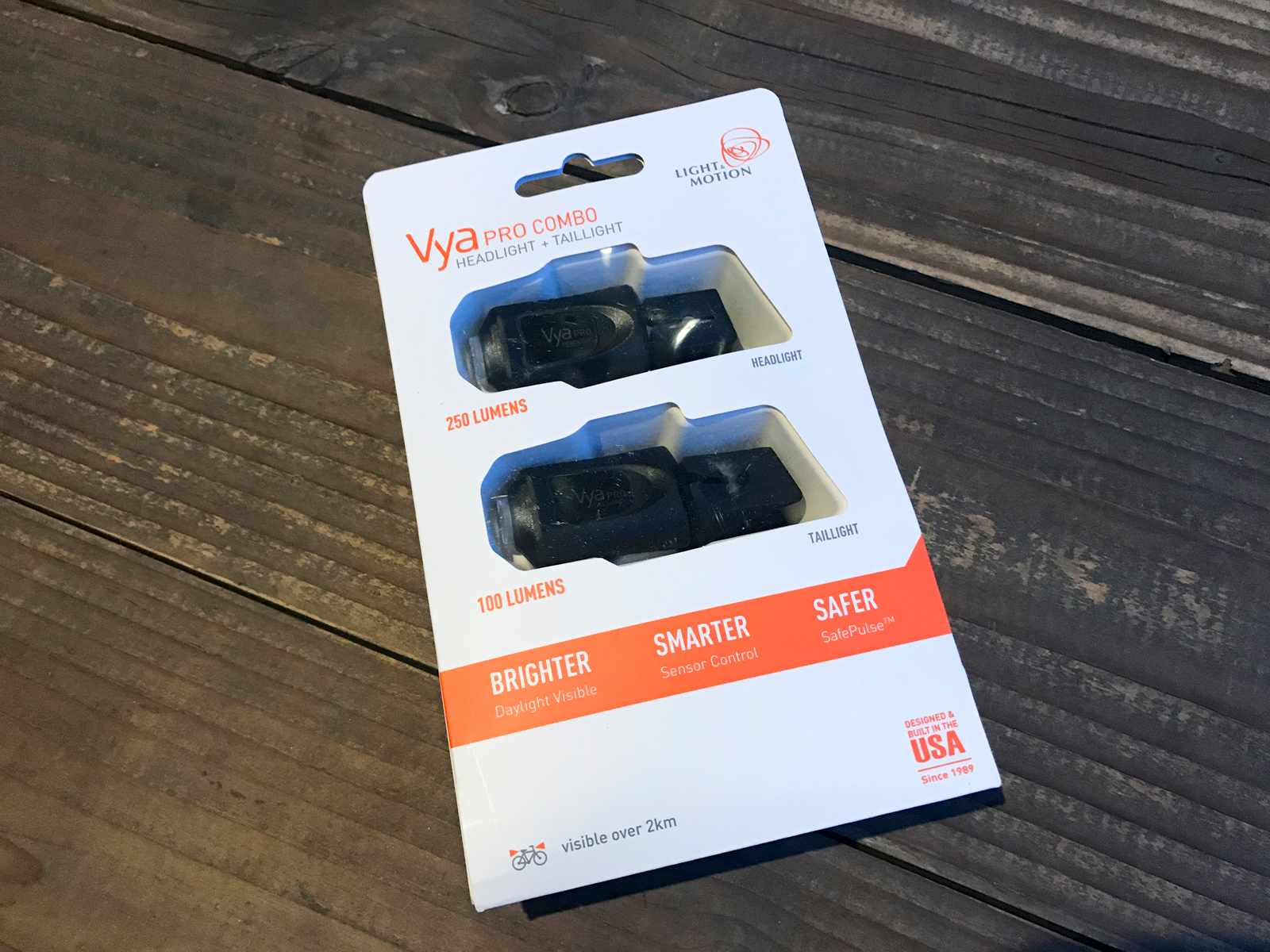 These lights will sense motion and light and alter their settings accordingly – it’ll flash if there’s ambient light, but stay on if it’s actually dark. The front light offers a maximum of 250 lumens, while the rear is 100. If you want to check out the beam pattern and brightness of this, or any number of lights from other manufacturers, you can check out Light & Motion’s ‘We Test Lights‘ website.