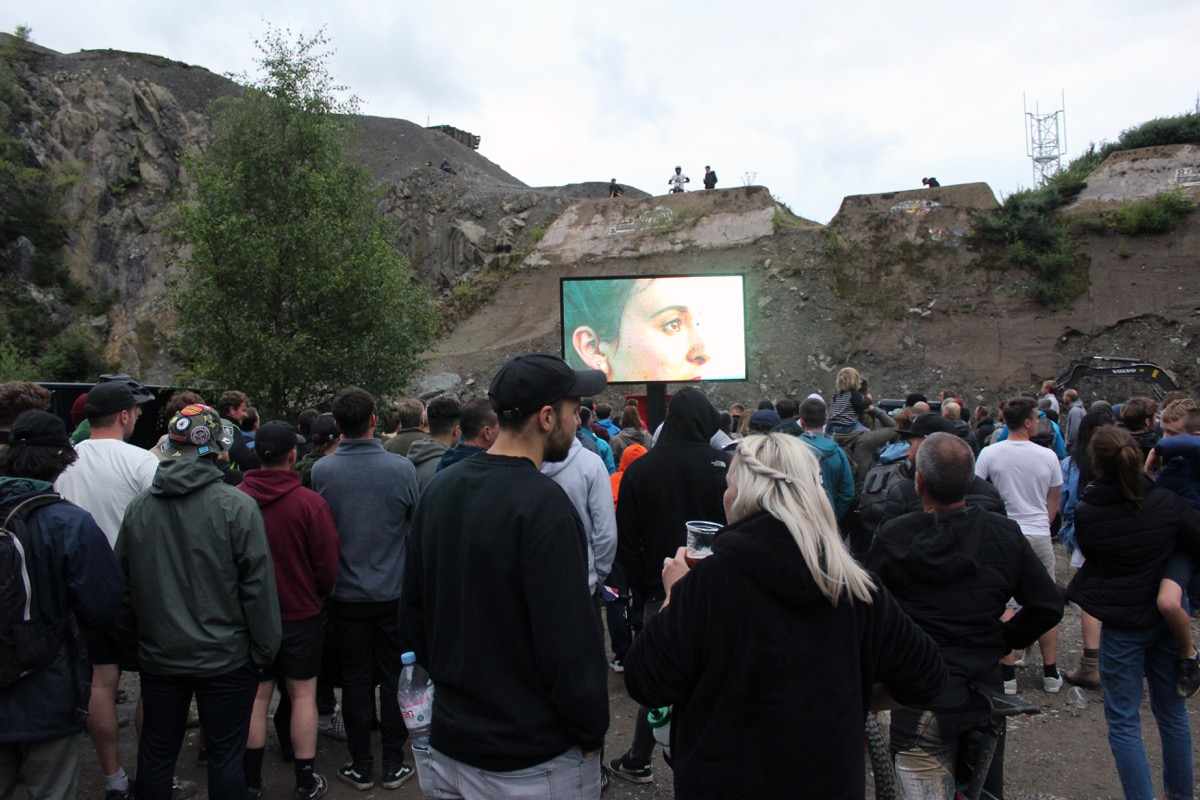 The run into the bowl was fast Pulling shapes in the 50 to 01 Bowl Jam Josh Bryceland hitting jumps in the Bowl Jam Ooh, a trick! Careful now. Big screen for the premiere of Veronique Sandler’s Vision film