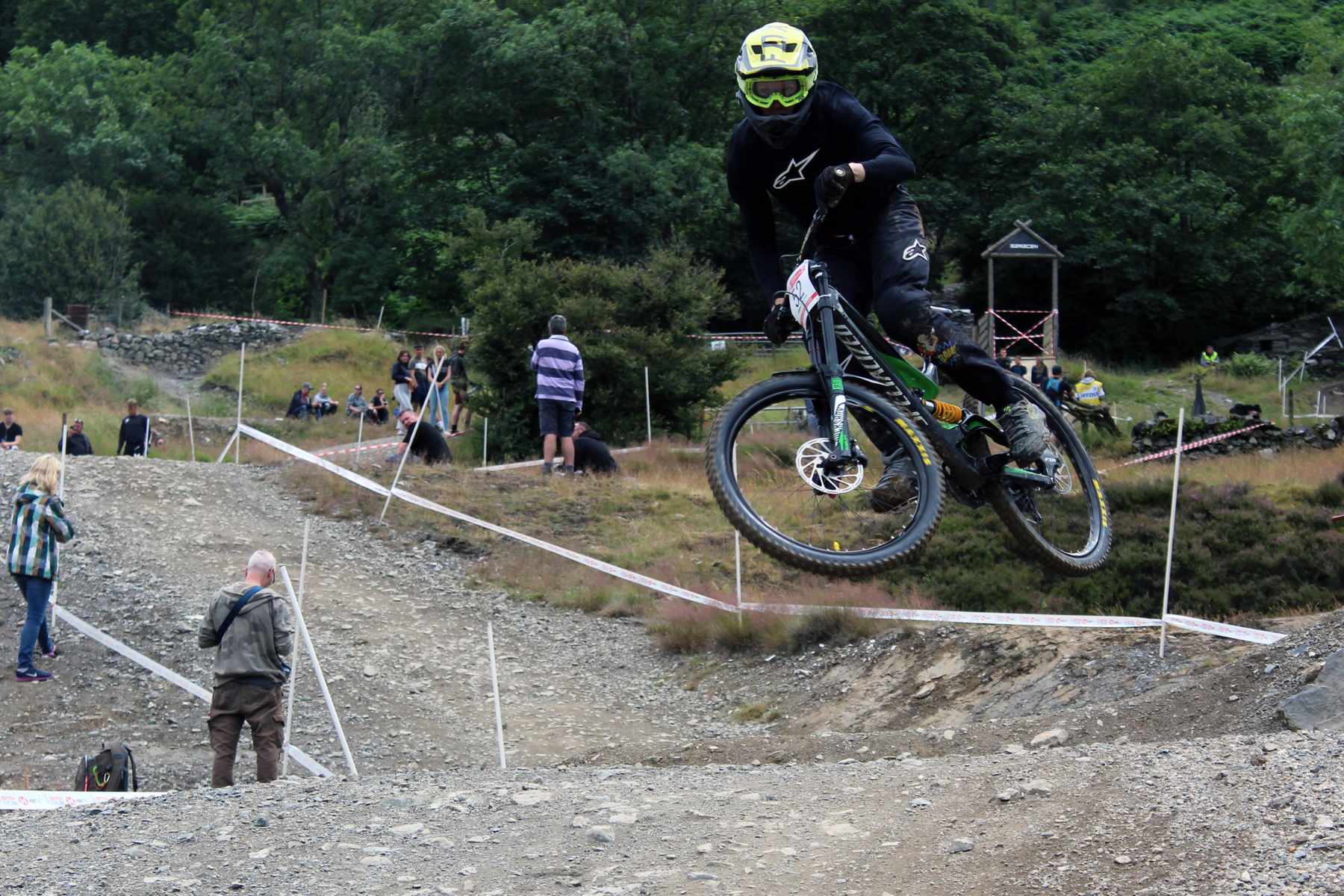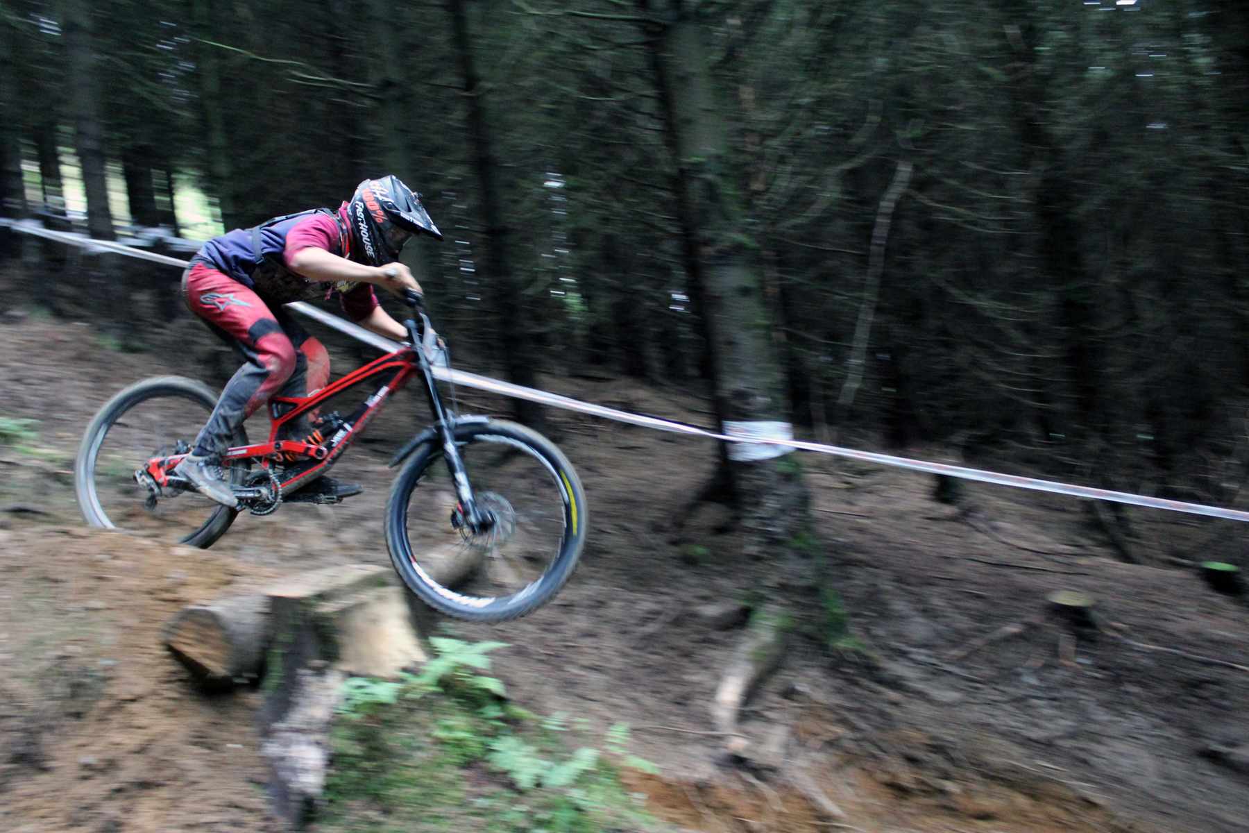 If you wanted to watch the carnage this tight left into a drop into a steep chute was the place to be Pete Robinson scrubbing the final jumps 30th Senior Men Pan shot action Josh Whittle 17th Youth