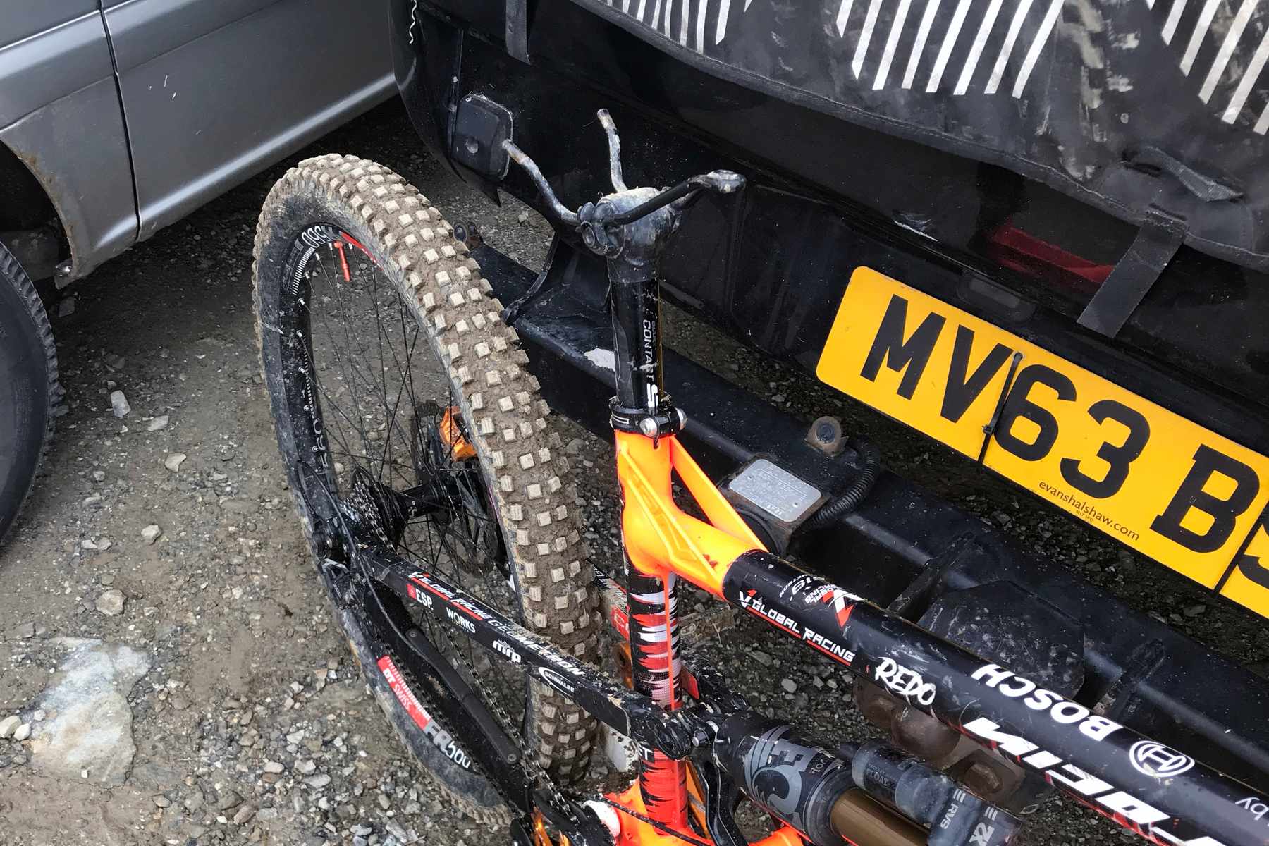 Talk in the pub was that Danny Hart’s starting on dry tyres, Minions to be precise (confirmed in the Will Longden podcast here). I have dry tyres on one set of wheels or Magic Mary’s on another but I decide to replace the front dry tyre with a full spike. It’s a tough choice because the top section is hard pack and the bottom is quite rocky which will suit the dry tyre, but without the spike who knows what will happen in that middle section?