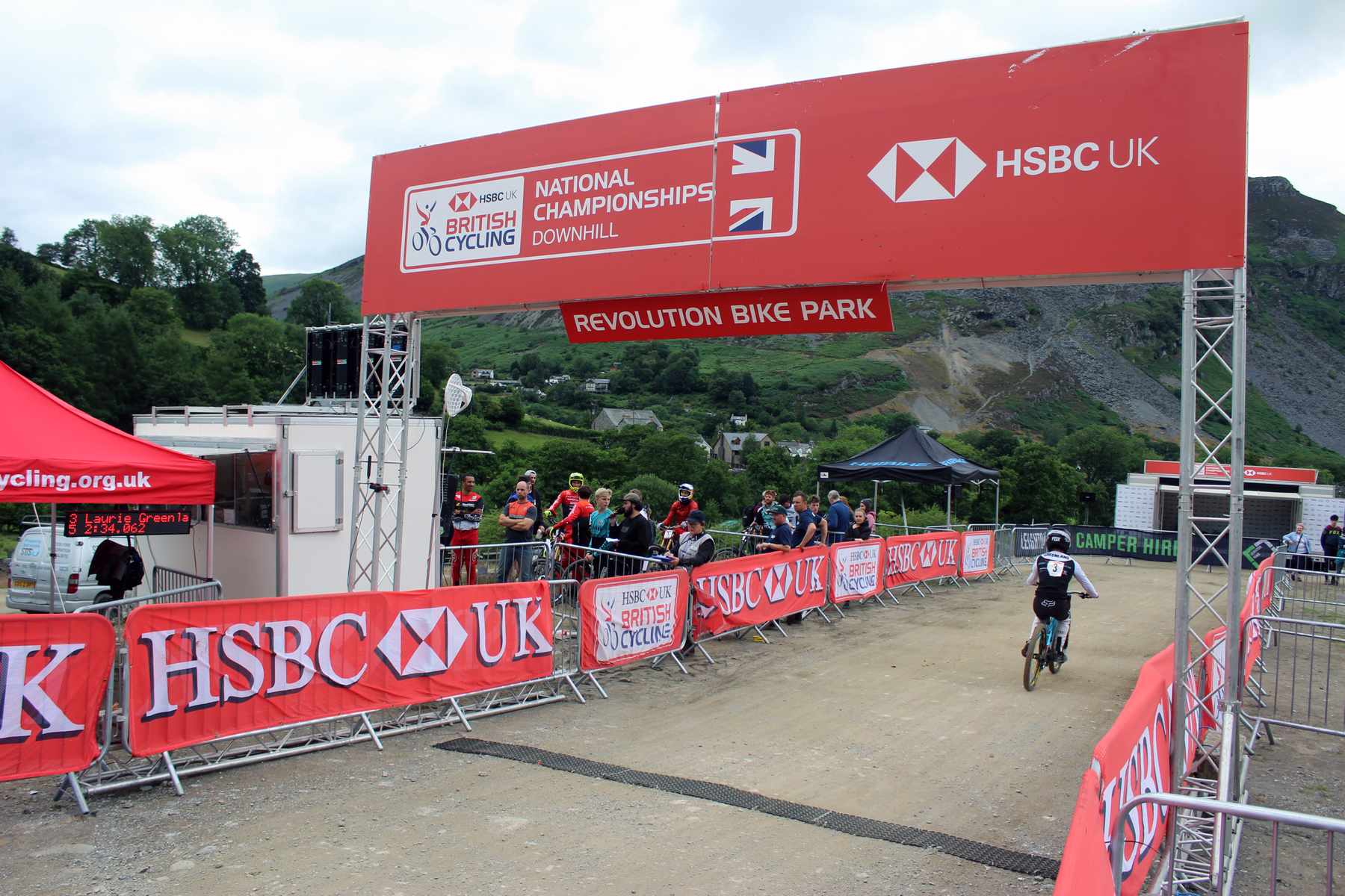 By the time we head up for race runs I’ve sorted out recording the aforementioned podcast with Will Longden on Monday. I’ve seeded 7th/7 and I genuinely don’t think I can go much faster. Maybe I could do a 3.35 but sixth place seeded on a 3.31. As I get to the front of the line I watch the rider who seeded first in the 40-44 category, James Hughes, wheel spin out of the start gate and manual the first jump, never stopping pedalling. On a greasy track I haven’t got that kind of commitment in me, particularly after clipping a pedal out of the start gate at both Fort William and Bala.