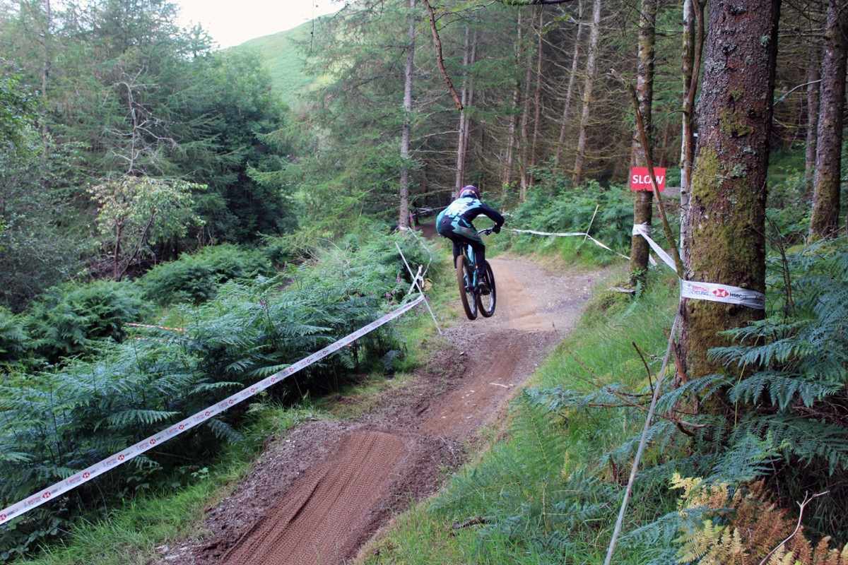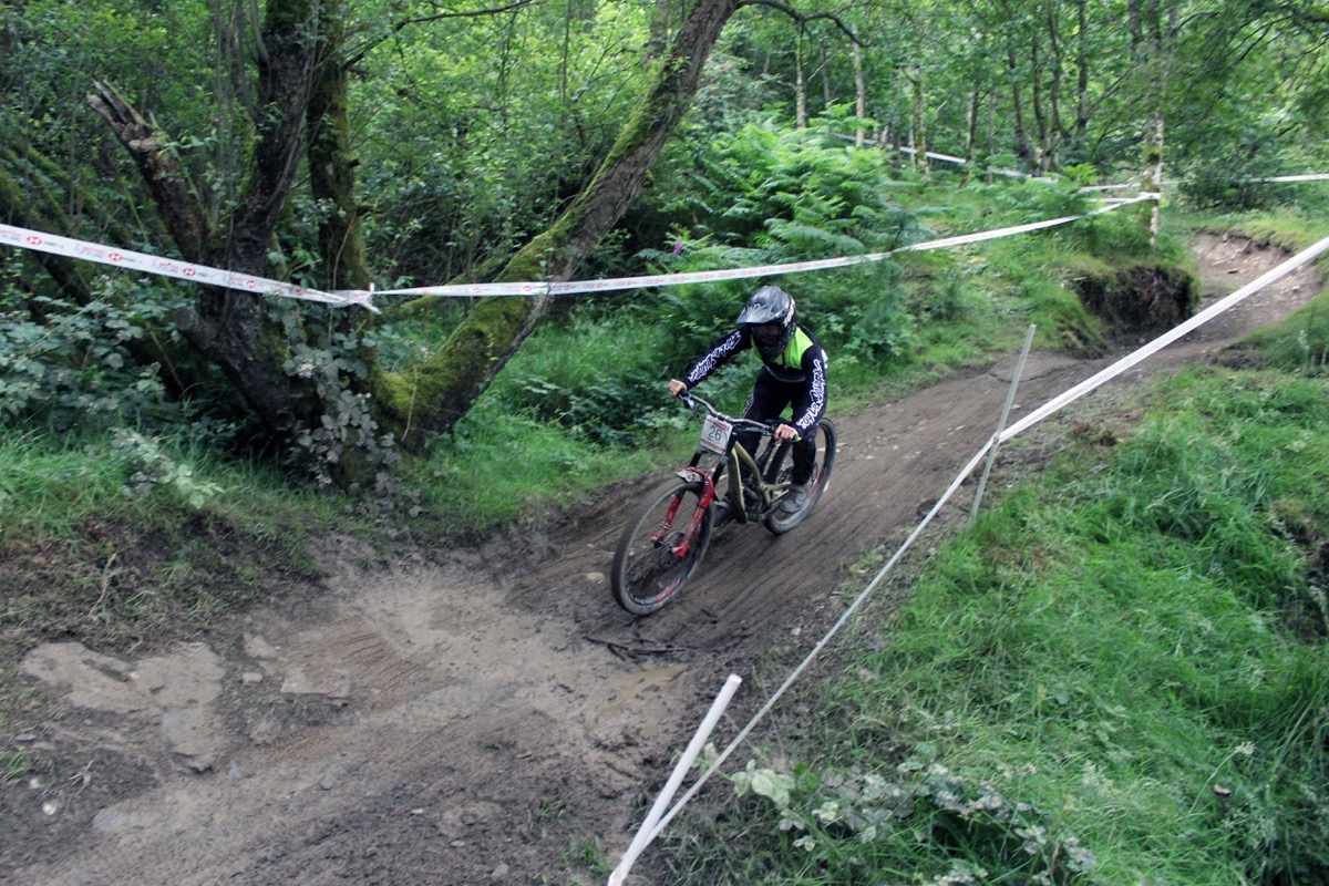With Tahnee Seagrave, Rachel Atherton and Katy Curd all out the Senior Women’s race was wide open. Racing a Calibre trail bike Chloe Taylor thought she’d won it, but Stacey Fisher was controversially awarded a re-run after a dog was seen on track. That re-run was a 3:04 dead and gave her the win by 0.848. Becci Skelton took third.