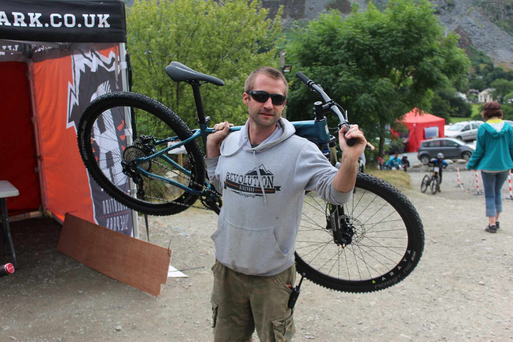Mud after Binnsy’s first practice run Might wanna straighten the bars before you ride that Revolution Bike Park’s Tim Foster with a raffle prize It wasn’t Laurie Greenland’s weekend 20th Senior Men