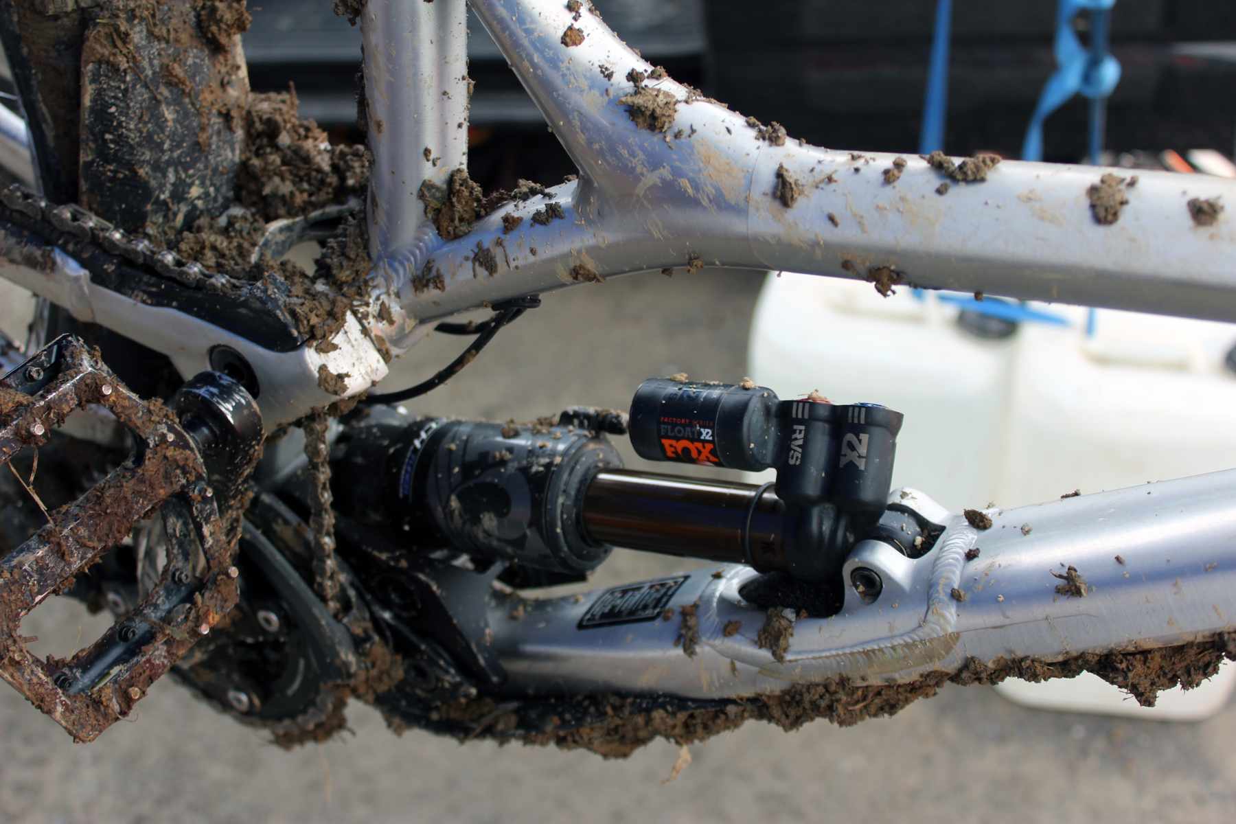 “Where are you going???” Binnsy shouts as we come through the rocky bottom section. I’m trying to hold a straight line, but the front wheel is pinging off rocks; it’s time to ditch the spike. The track’s drying up and I switch to a Magic Mary for my fifth and final run of the day. There’s lots more grip and as I swap bike kit for camera kit and head back up the hill my head’s in a much better place; that’s until I watch other riders pumping off bits of the trail that I’m trying to avoid.
