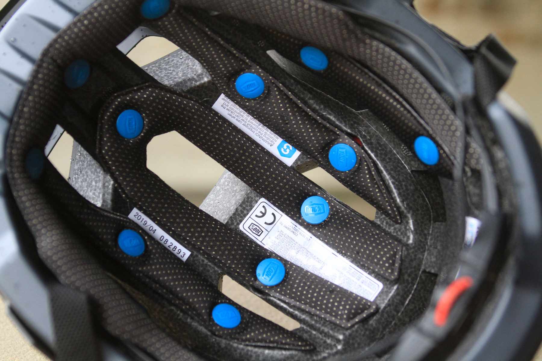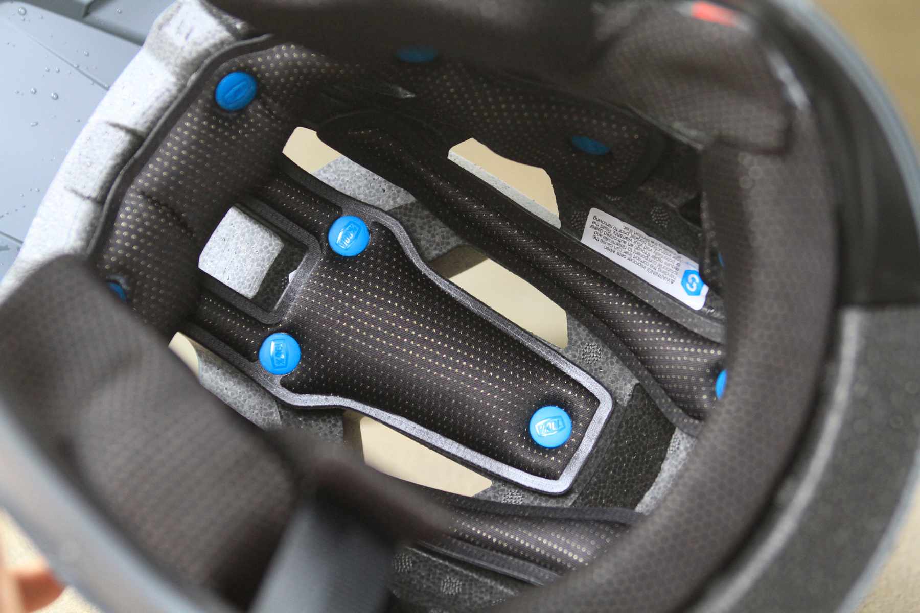 Inside the helmet is a wicking liner and 100%’s Smartshock®, “the newest, advanced, intelligent, fully suspended rotational system for your brain.” This system aims to provide the same anti-rotation protection that MIPS and other brands offer, by having captive nubbins that can move within the helmet’s shell with your scalp, to give some protection against off-axis hits and glancing blows.