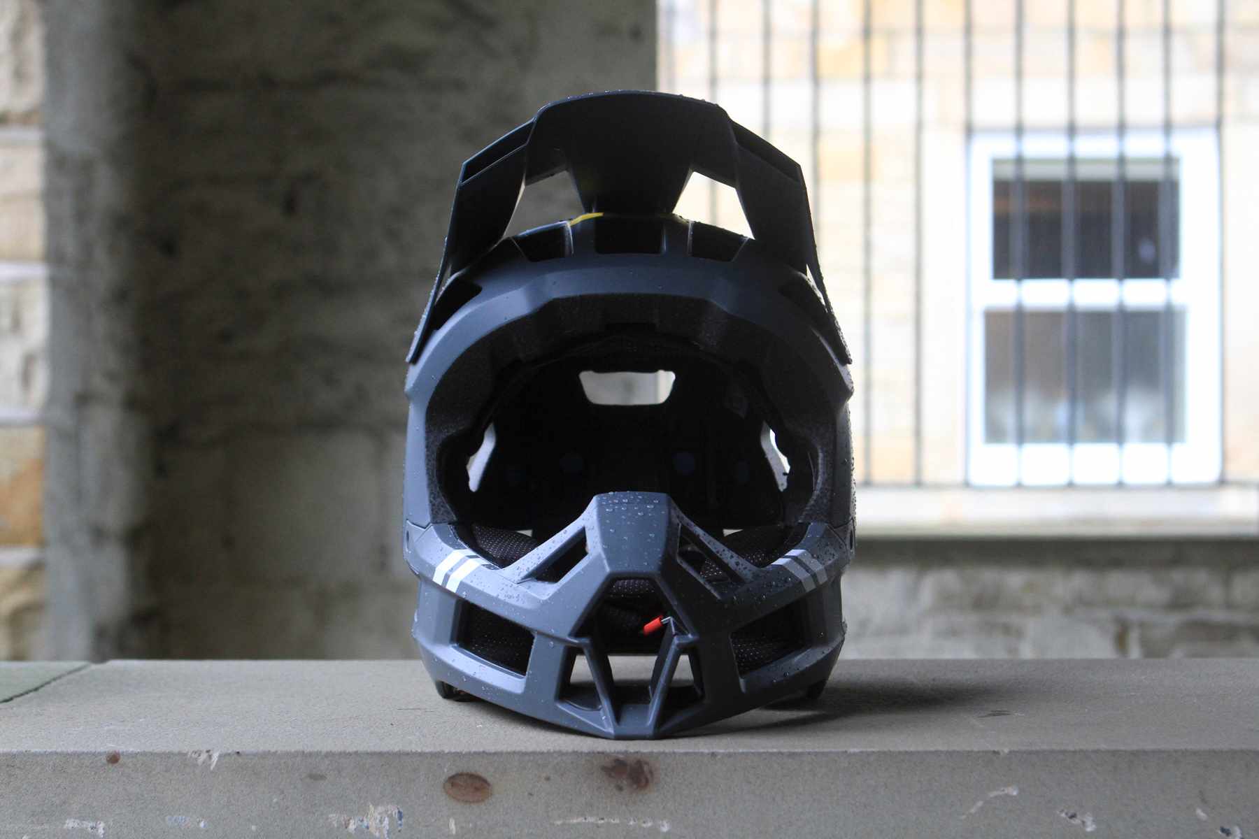 The very open-plan Trajecta helmet also includes this Smartshock system, as well as 24 vents. A medium helmet weighs around 860g. The chin-bar is airy and designed to let in as much oxygen as possible when you’re grunting through an enduro stage.