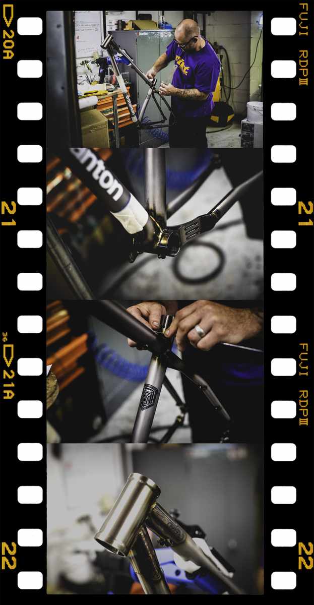 To deliver the Raw finish, the frames will not have the ED coating, which provides rust protection – so the inside of your frame won’t be rust protected. Lube that seat post! However, layers of clear coat and clear powder coat will give the outside of your frame a degree of protection from the elements. Dan explains that you’ll still get little rust spiders developing under the surface, but the clear layers will give a good degree of protection. When you decide it’s really all getting too scruffy, you can send the frame back to Stanton to have it dipped, stripped, ED coated and a new coat of colour added – which will make it all good as new.