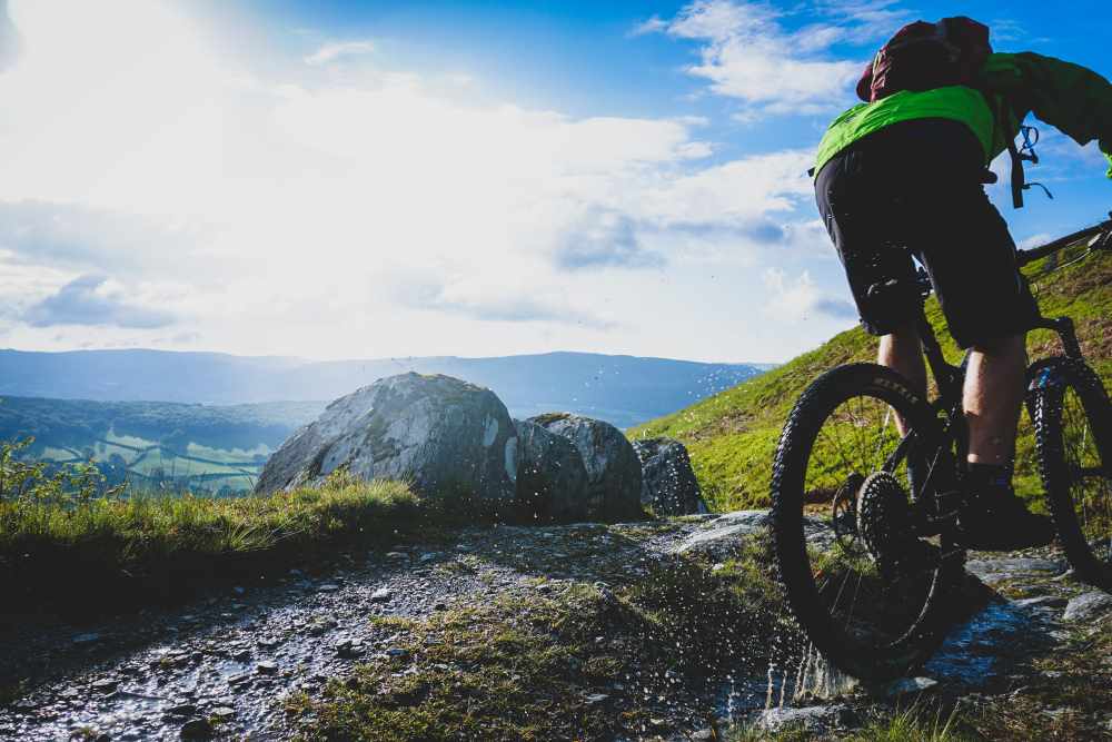 Eventually, after a slow and soggy pathfinding exercise (seriously, take a map or use a GPS. There are no way markers!), the bridleway began to point downhill and open up onto a south-facing dry grassy trail. I flicked my shock into ‘Downhill’ mode, weighted my dropper post and started accelerating fast into the descent. There were no berms or groomed features. No perfect bike-length rollers to ‘gap’. And the countless rock gardens and drops were blind, millions of years of erosion had not intended them for mountain bike use. But I loved this. Proper mountain biking, and so far, aided by gravity, proper fast!