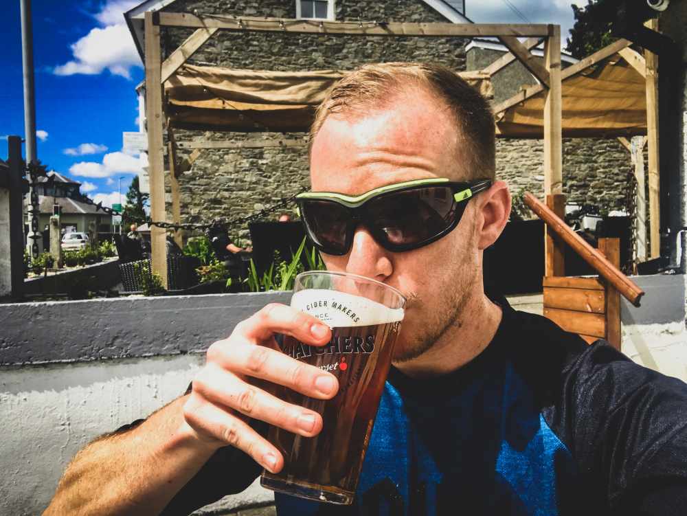 I rolled back into Rhayader feeling heroic. It was 2.30pm and the town was now buzzing with summer day-trippers. The sleepy pubs from this morning were now alive with punters drinking ales in the sunshine. Sitting outside the Lamb and Flag Inn with a pint, I checked my recorded activity on the Garmin app. 70 km in 8 hours 43 minutes – 5km short of my planned route due to the trail closure, but this had still been my furthest ride on a mountain bike by a long stretch. A truly Epic Ride on the longest day.