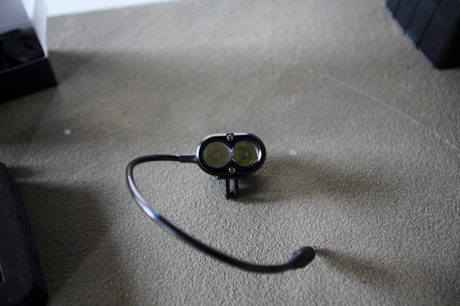 As above, only smaller with a 1.5 hour run time. These lights are both waterproof, come with a helmet mount, 3.4 AHr lithium-ion battery, Gloworm TX wireless remote, 31.8mm quick release carbon composite bar mount, hex tool, spare optics (wide angle/spot), spares bag, smart charger and a 80cm extension cable.