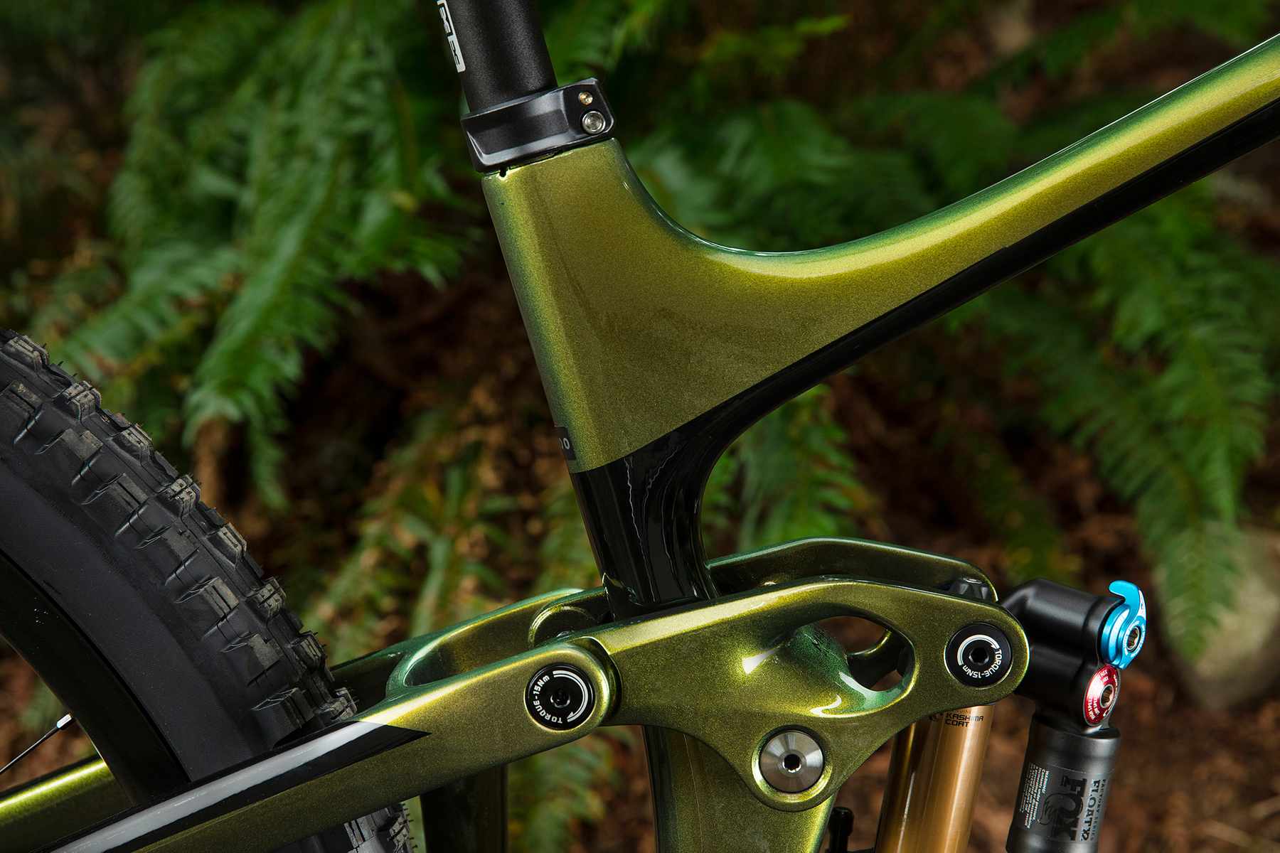 Through three rounds of prototypes and working with feedback and input from racers, Giant settled on 146mm of rear travel delivered through its updated Maestro suspension platform. Although there isn’t as much travel on offer as on some 29er enduro race bikes, Giant prioritised high quality suspension travel and have designed the kinematics so the suspension is active through the whole stroke with no spikes in the progression curve. Helping with this is the new trunnion mount shock with a longer stroke, and a relocated pivot point also allows the seat post to be inserted further into the frame so you can run a longer dropper. Having said that, Giant conservatively spec a 125mm dropper on the small and medium sizes, and a 150mm dropper on the large and XL sizes.