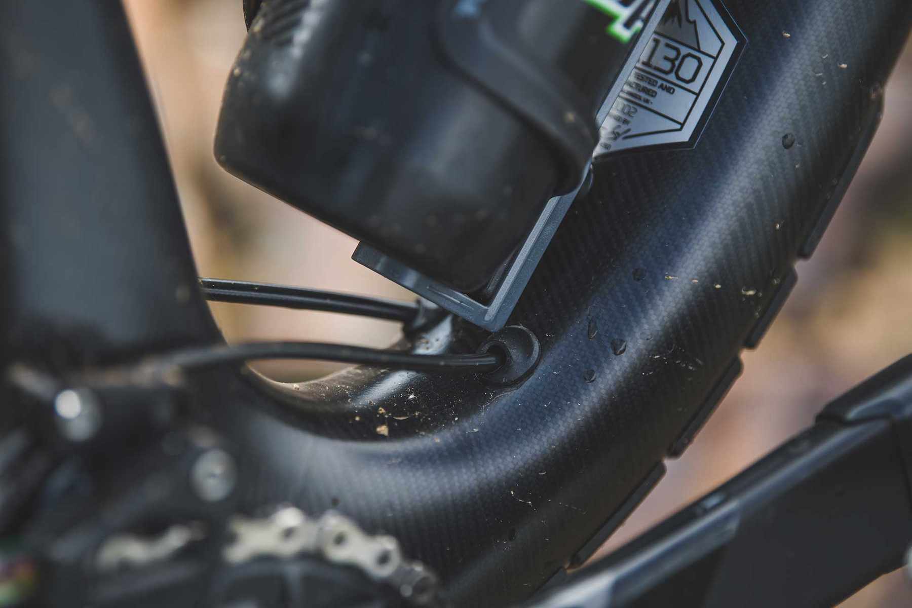 Skip forward 18 months and now we have the second bike from Hope – the HB130. Proposed five years ago, it took the development of its longer travel sibling to iron out the manufacturing processes needed to allow for the relatively rapid development of the HB130. Over these past 18 months there have been four different variations to the geometry to settle on what we have now. Changes in the seat tube angle. Changes again. Headtube angle. Oh, and a bottle cage, they want me to stress: it has a bottle cage.