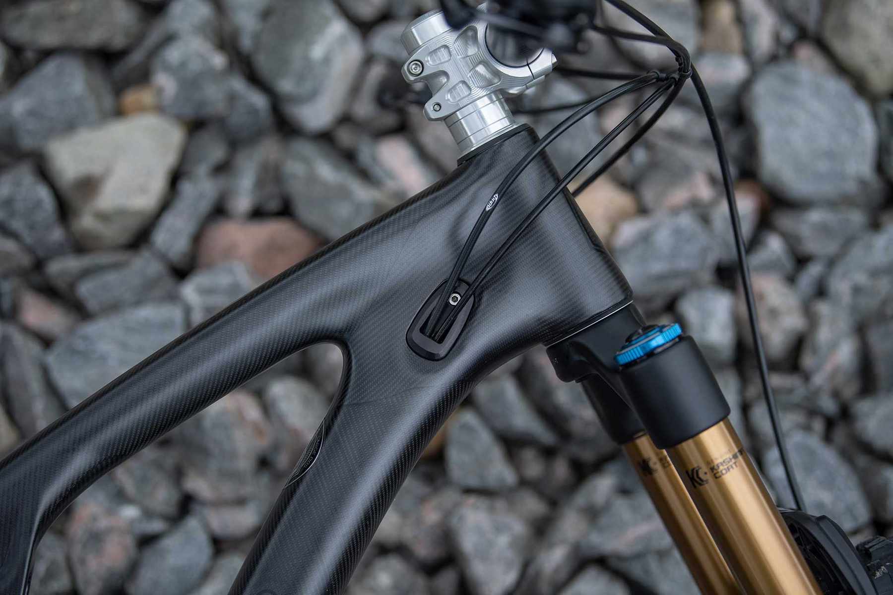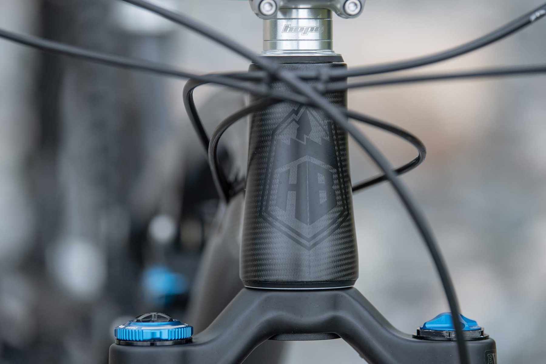 Stopping is unsurprisingly courtesy of a pair of Hope Tech 3 E4s mounted on a carbon Hope bar and trusty 50mm Hope stem. Drivetrain duties are courtesy of SRAM with its 12 speed X01 Eagle groupset throughout including cranks. However, if you lust after Hope Evo Crankset fear not, as an addition the bike can be supplied with the new version of the crankset for a price not dissimilar what you should be able to sell off your unused, packaged and unmounted SRAM crankset that will come with your bike. Convenient.