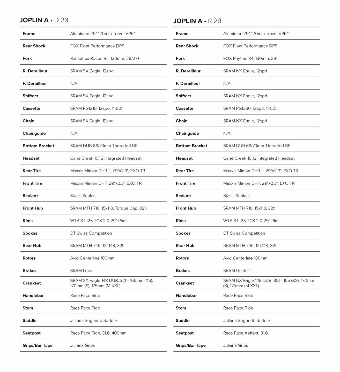 There are three models in the 2020 Joplin range, each with two build options. Pricing is the same as the Tallboy for equivalent models (whoop!):