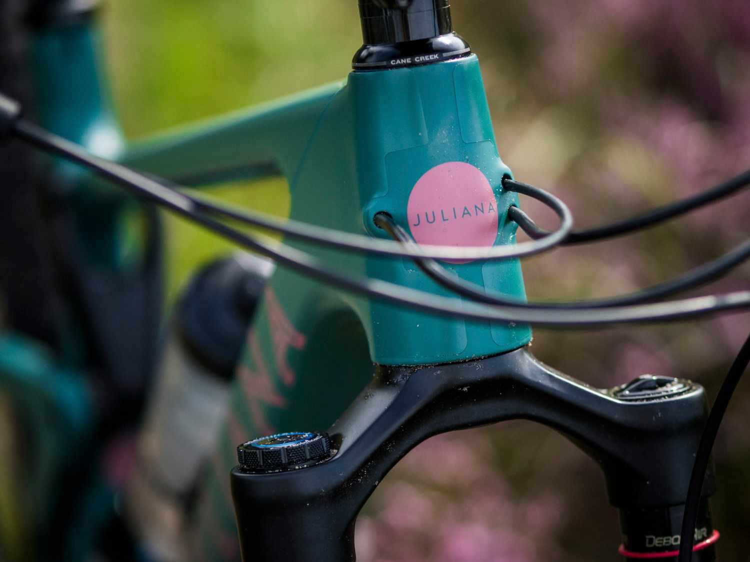 The new linkage has a flip-chip so you can set the Joplin to Hi or Lo. Juliana suggest Lo for riding steeper trails, although it only makes a minor change to the head angle, taking it from 65.7° in Hi to 65.5° in Lo.