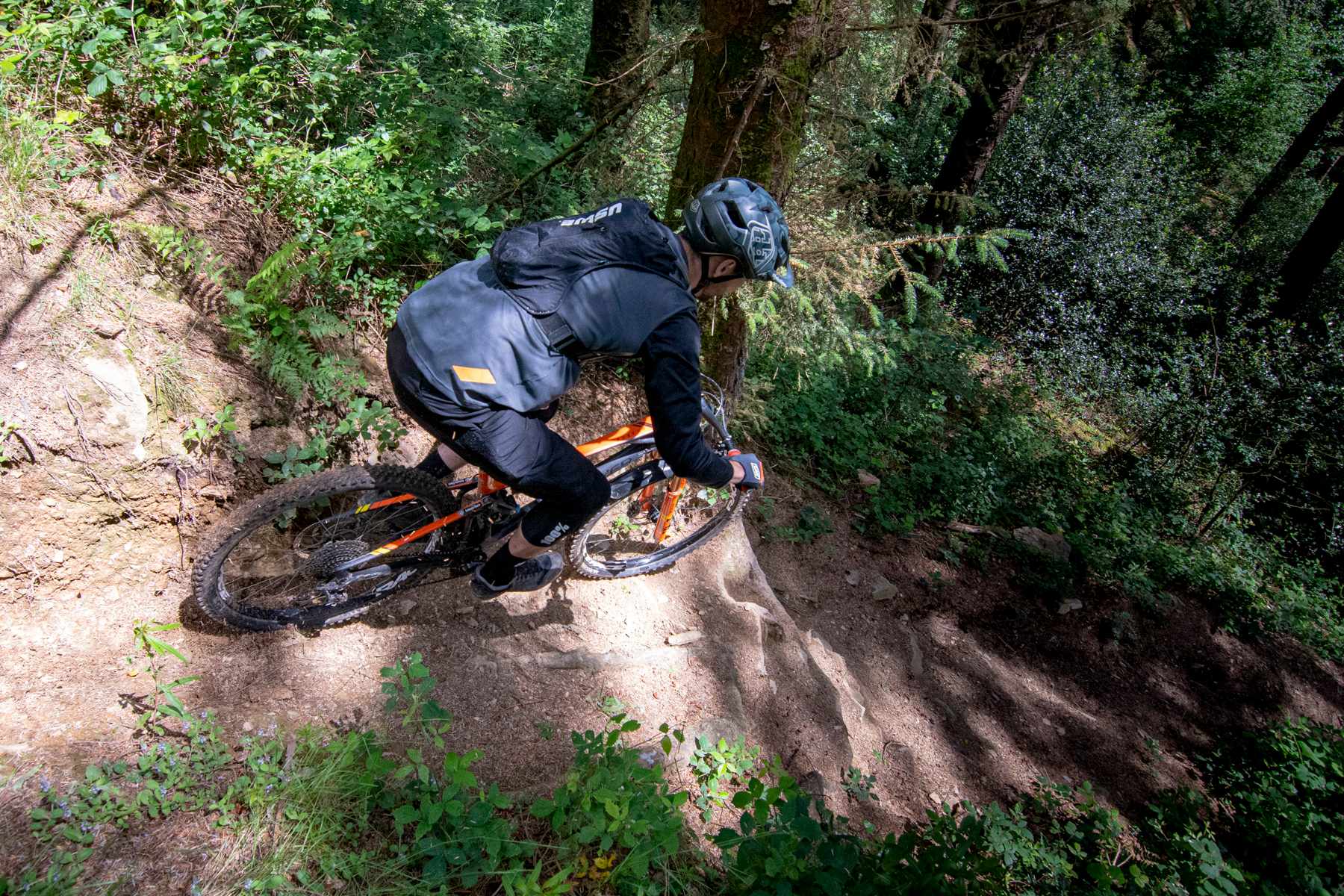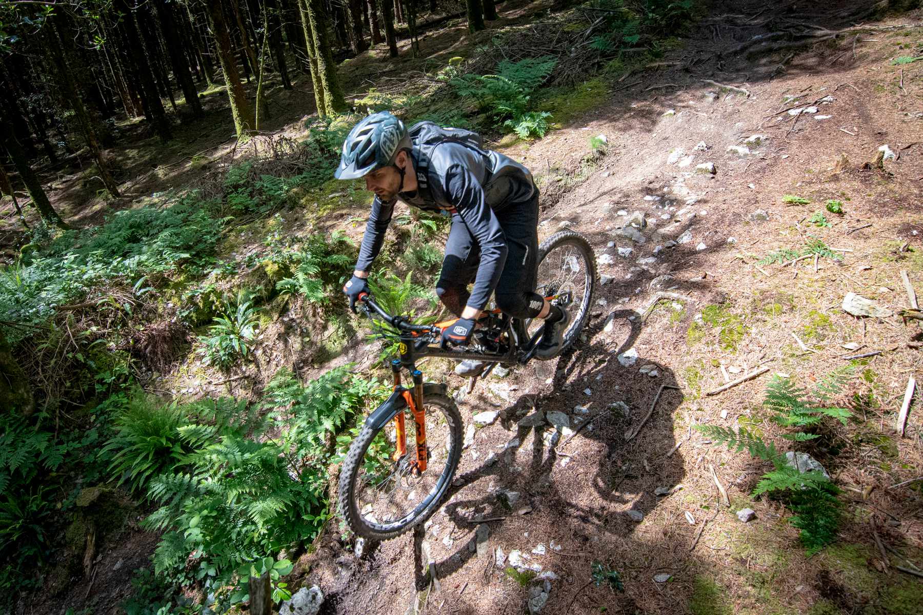 I was kindly shown around GBH a day or two later by Antonio Fiore, from bike distributors Silverfish (which is based just down the road in Saltash). We started in a pub car park (which always augurs well) before spinning for a couple of miles along an old railway path and up into the woods. The trails he showed me here were wonderful: dappled, swoopy, rooty, occasionally open, steep, flowing and all heavenly points in between. A couple of kicks of the pedals had us sailing through foxglove-festooned glades one minute, and plummeting down narrow, root-infested gullies the next – before, improbably, stopping to give some directional assistance to an older couple who were walking up the mountain bike trails. After showing them a somewhat safer way up the hillside, and one that was easier on their knees (“Two new hips and three new knees between us! I feel fresh as a daisy!”), we departed for a couple more runs of the good stuff before diverting to a café along the railway path for well-deserved pasties and cider. Marvellous.