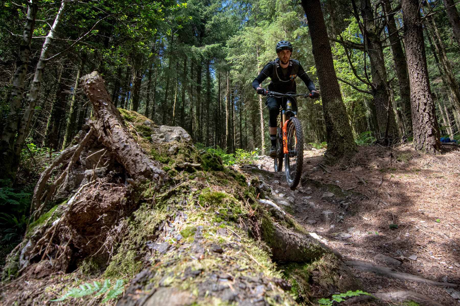 But Cardinham, of course, isn’t the only place in the area to ride a mountain bike. A triptych of woods – Grogley, Bishop’s and Hustyn – collectively given the sobriquet ‘GBH’, is also a favoured local Bodmin spot, which is privy to some more wild trail adventures than the well-surfaced, all-weather Cardinham. Perhaps surprisingly, it too falls under the aegis of Forestry England, as Chris explained: “Forestry England owns GBH, but doesn’t manage it. We tolerate and monitor the trails, and occasionally move in to make them safe, but that’s the extent of it, really.” Sort of ‘officially unofficial’. I see.