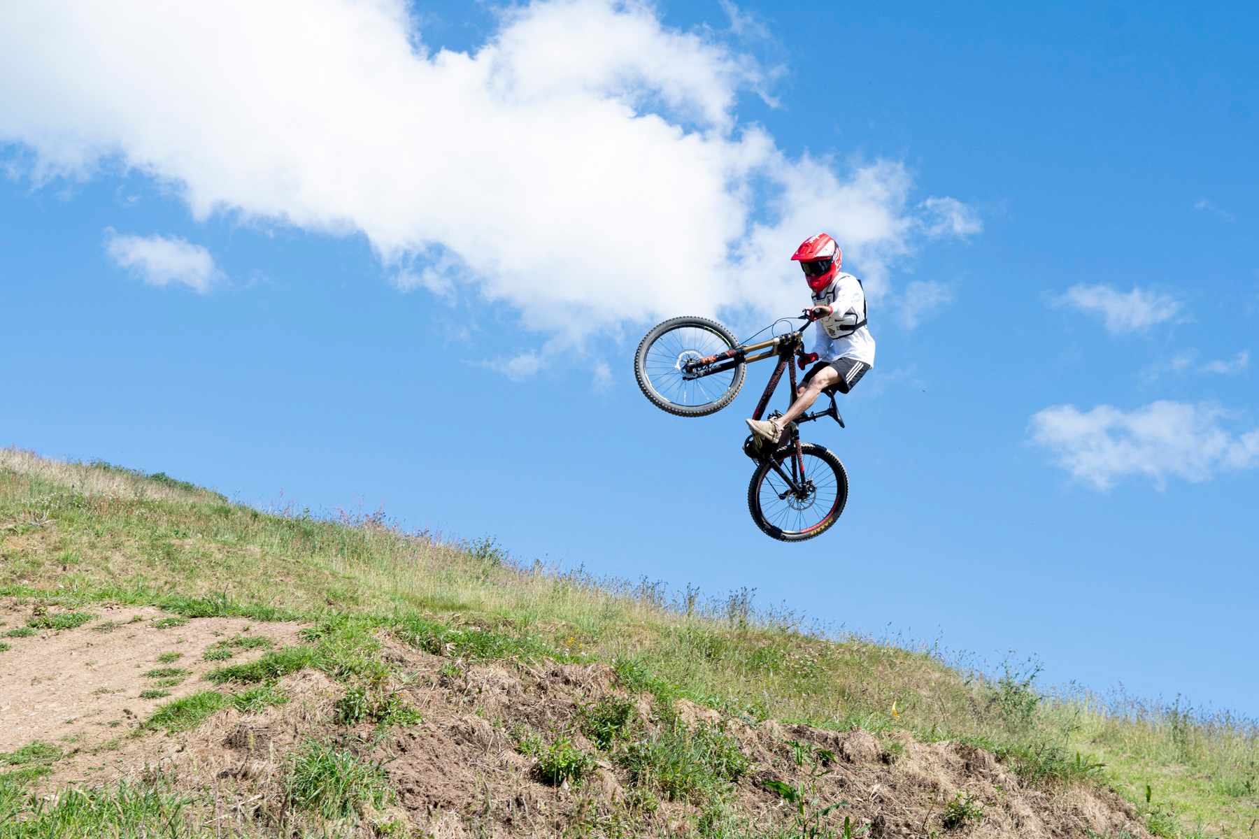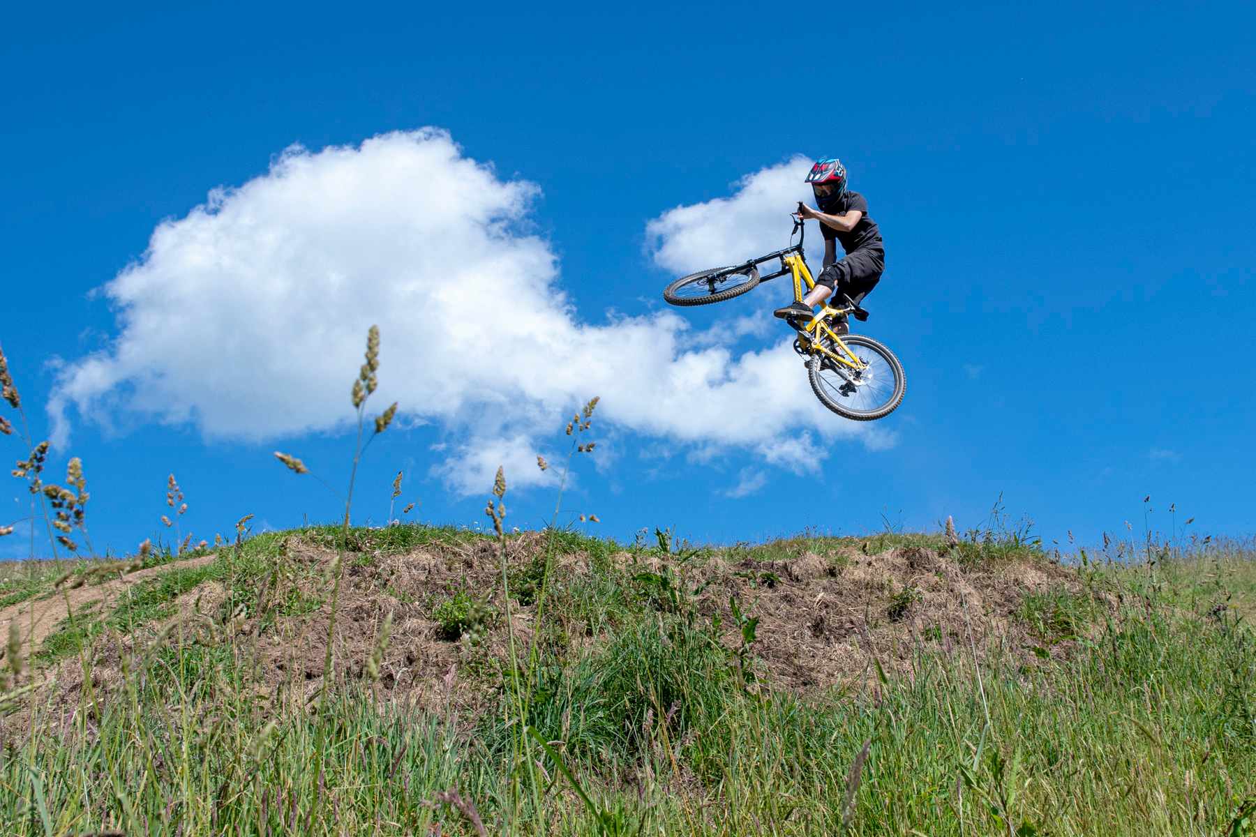 That’s the great thing about places like this – the blue trails are easily rollable, and are perfectly as able to accommodate the average ten-year-old as they are the more experienced among us, if ridden with a little more pep. And then there are the reds, still rollable for the most part, but bigger – and the blacks. Which – uh – aren’t rollable at all. And then there’s the pro line, which – well, it looks more like a few casual but enormous scoops out of the ground, interspersed with preposterously wide swathes of field.